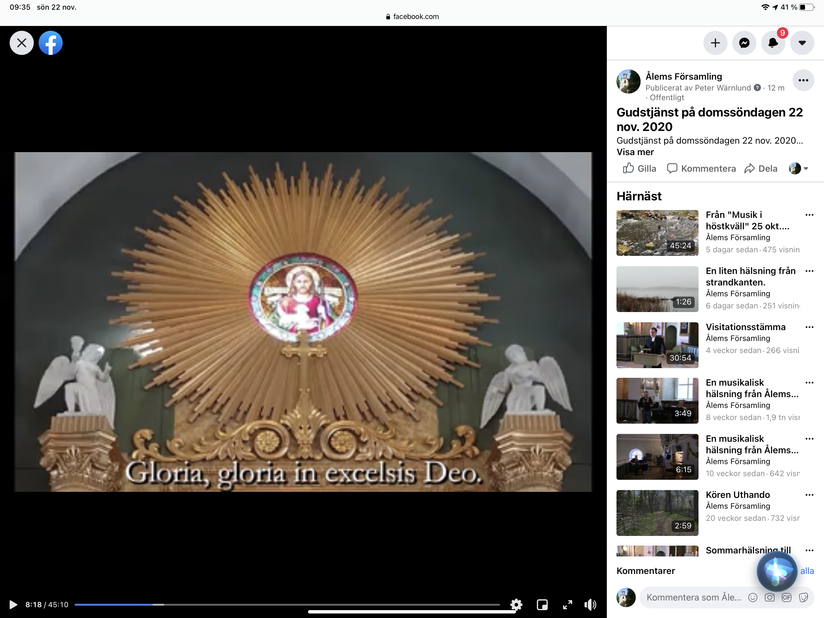Söndagens gudstjänst spelas in och publiceras på Facebook. Du behöver inte ha ett konto för att delta i gudstjänsten. Klicka här för att titta på söndagens gudstjänst.