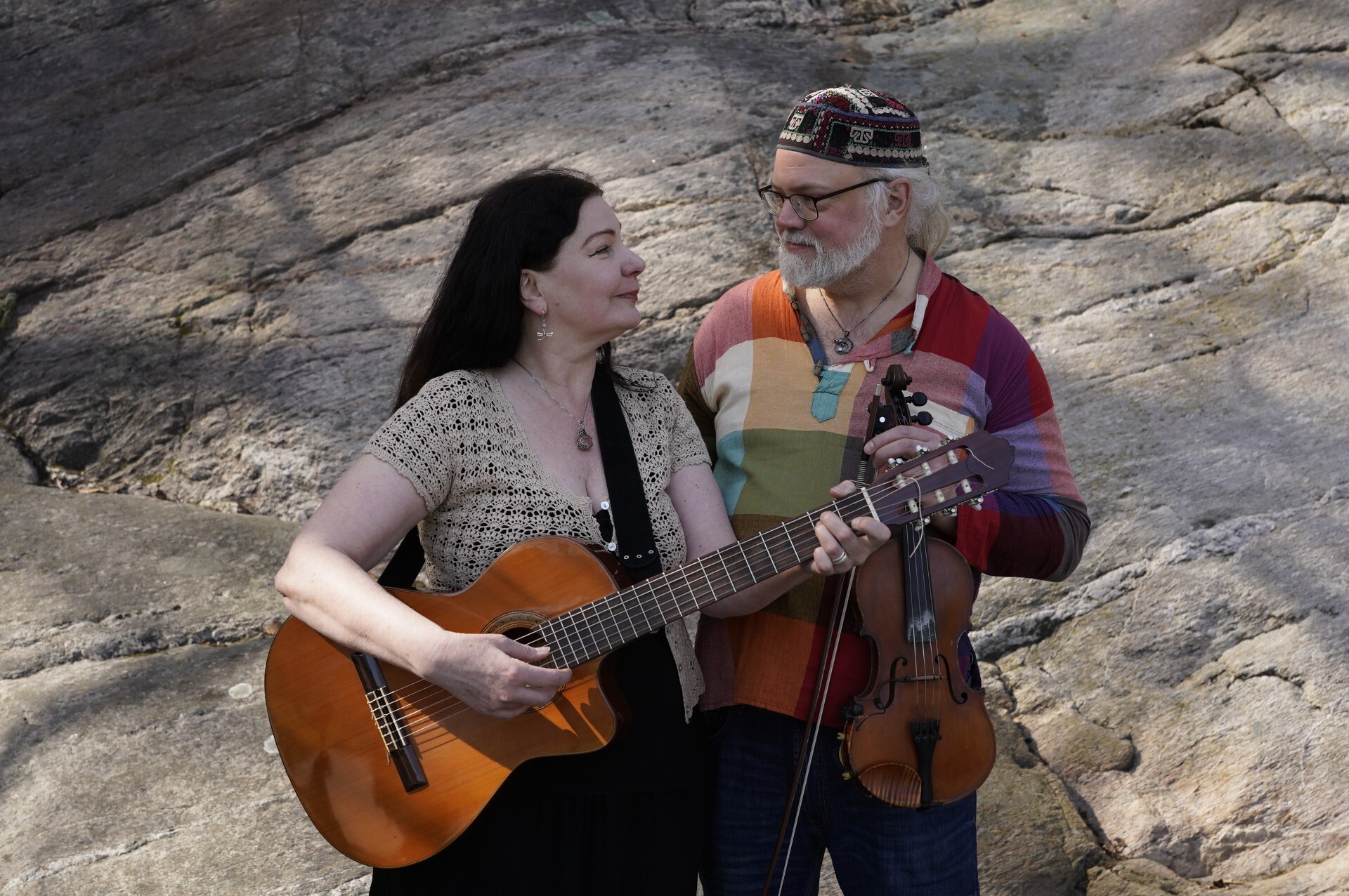 Marita Johansson (sång, gitarr.) Jonas Liljeström (fiol, sång.)