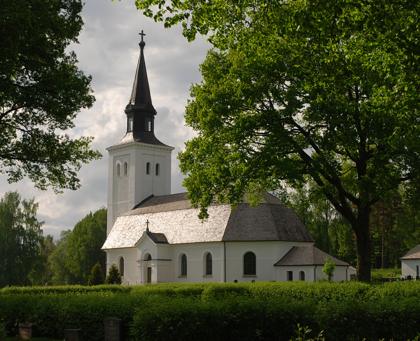 Ungefär sju kilometer söder om den nuvarande kyrkan låg den äldsta sockenkyrkan, en enkel träkyrka. Vid en utgrävning 1941 blottlades medeltidskyrkans grunder. Den revs på 1740-talet då den blivit föra liten för den växande församlingen. Som murmästare för den nya kyrkan anlitades Christian Haller, som några år tidigare svarat för uppförandet av domkyrkan i Karlstad.