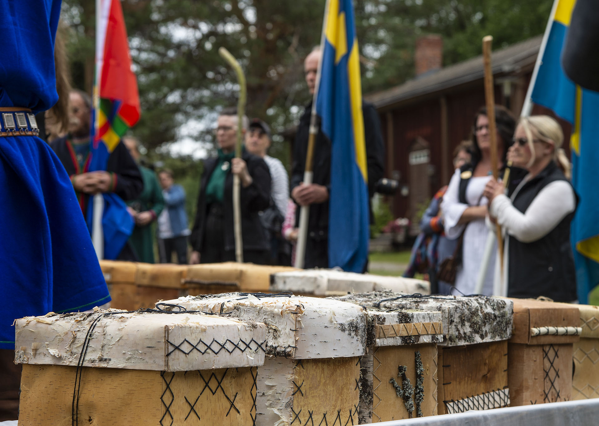 Kvarlevorna anlände till Lycksele i bilkortege från Västerbottens museum i Umeå liggande i vackra näveraskar som sedan placerades på bårar