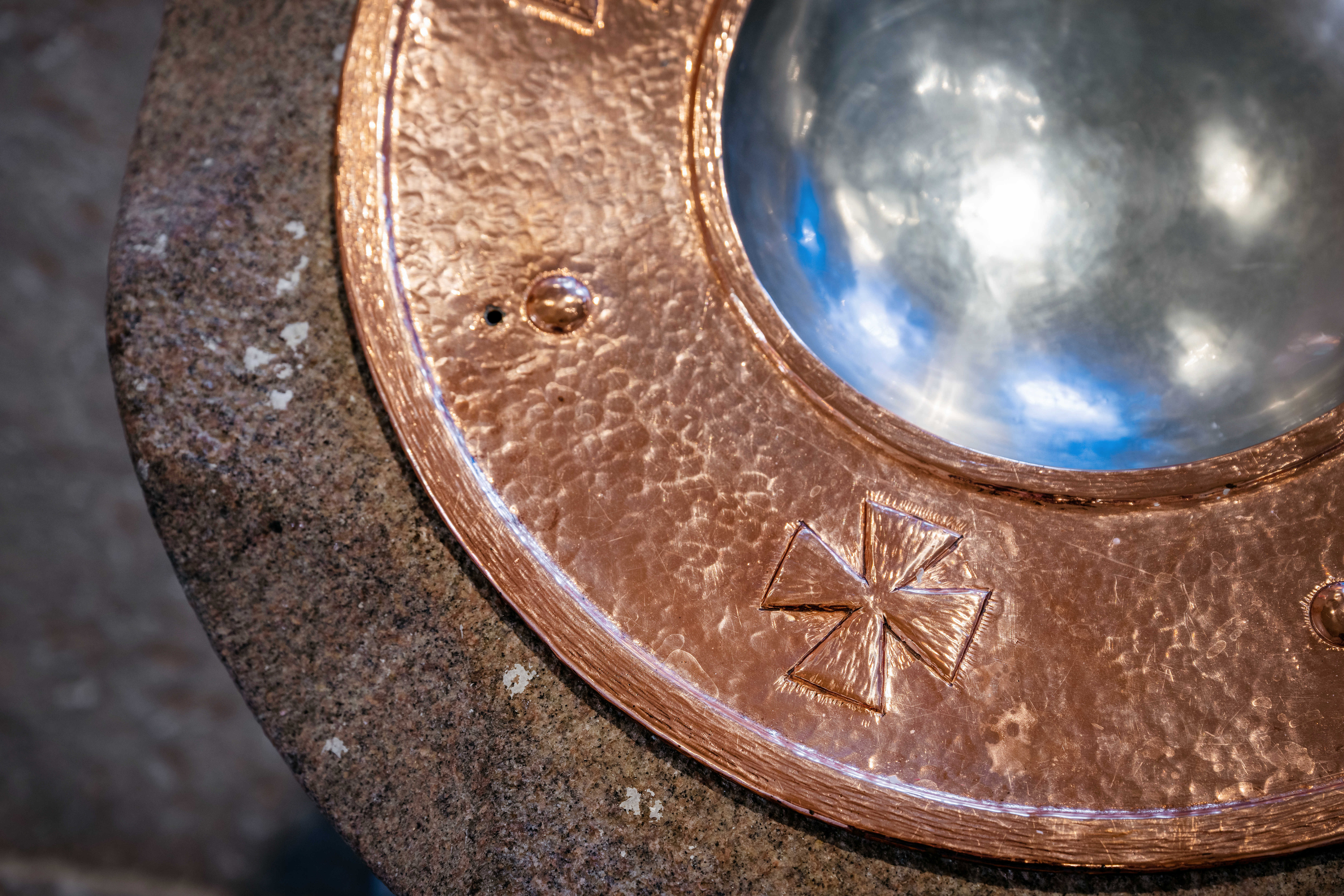 Musselskalet är en medeltida dopsymbol. Många framställningar visar Johannes i Jordans vatten bredvid Jesus. Med ett musselskal öser han vatten över Jesus. En mussla kan rymma en pärla. Jesus berättar att det med himmelriket är som när en man sålde allt han ägde för att vinna en dyrbar pärla som han funnit. Genom dopets vatten kan människan vinna något av så stort värde att ett nytt liv börjar.