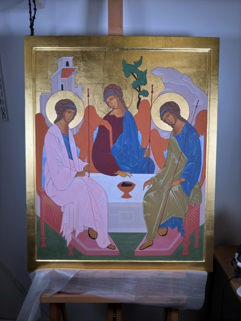 Det är en traditionell Treenighetsikon efter 1400-talsmästaren Andrej Rubljevs skola. Målandet av en ikon är en lång process som startar långt innan färglagren läggs på ett efter ett. Allt i ikonen - figurernas lutningar, händers placering, detaljer i bakgrunden har en rik betydelse.
