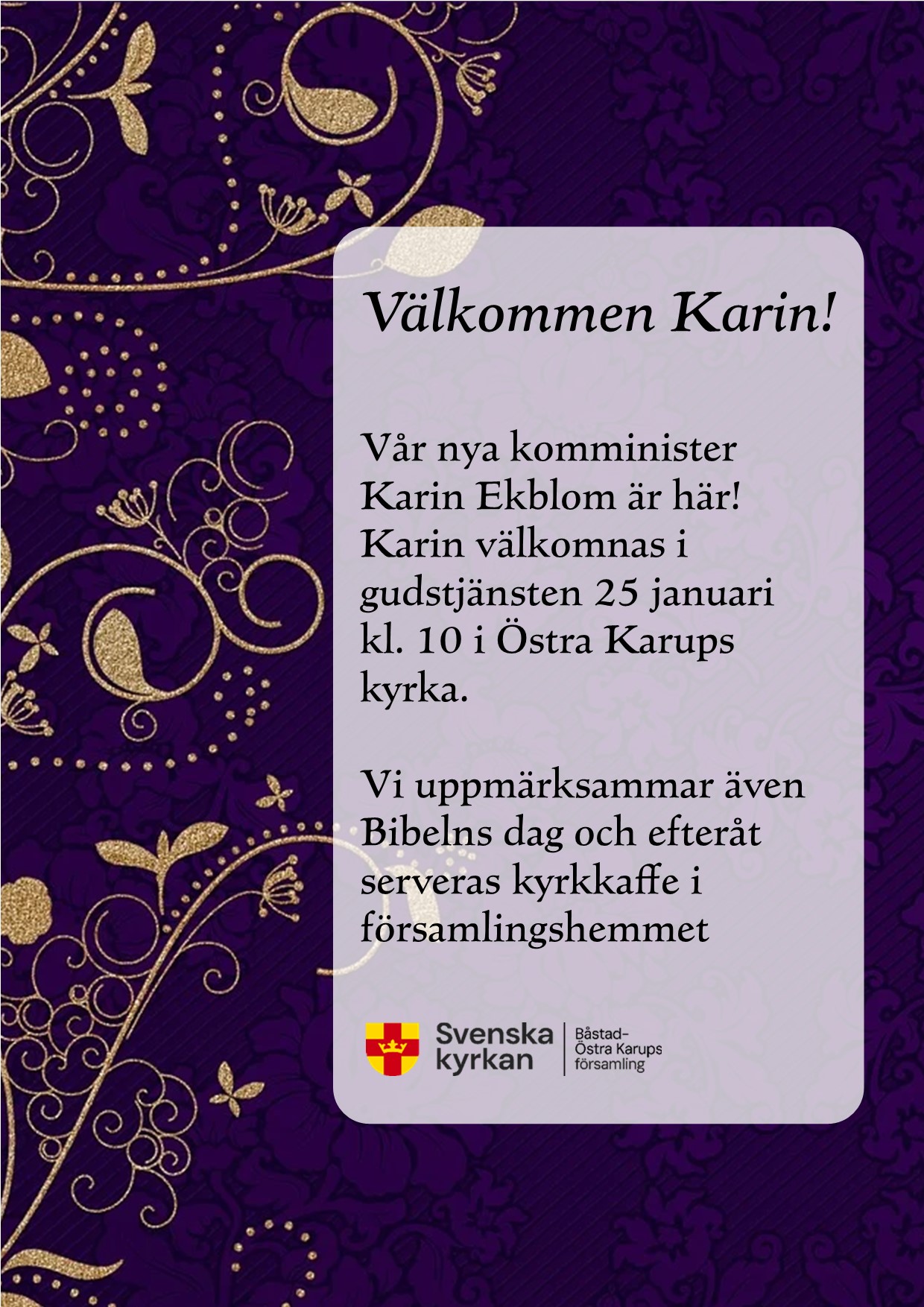 Välkomstgudstjänst 25 januari i Östra Karups kyrka kl. 10
