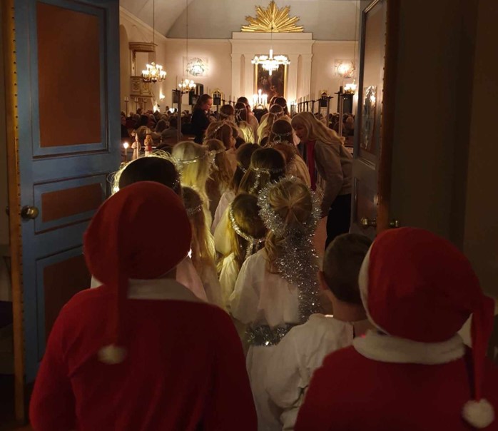 Luciatåg med barn under ledning av Michal Wodrowski. Välkomna!