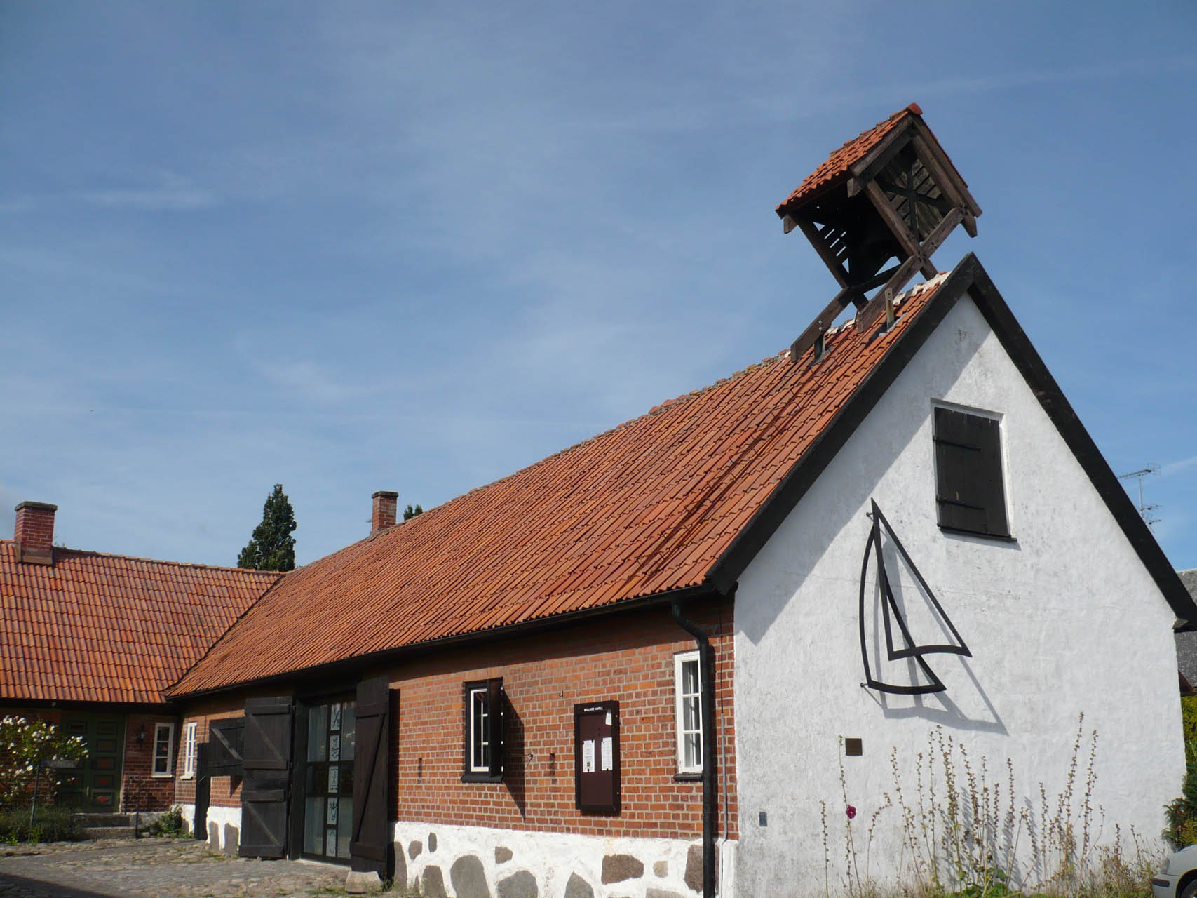 Till det yttre är längan oförändrad. De gamla logportarna sitter kvar, likaså de stora, tjärade luckorna för fönsterna. Det enda i exteriören som förråder ett kapell är klockstapeln på taket.