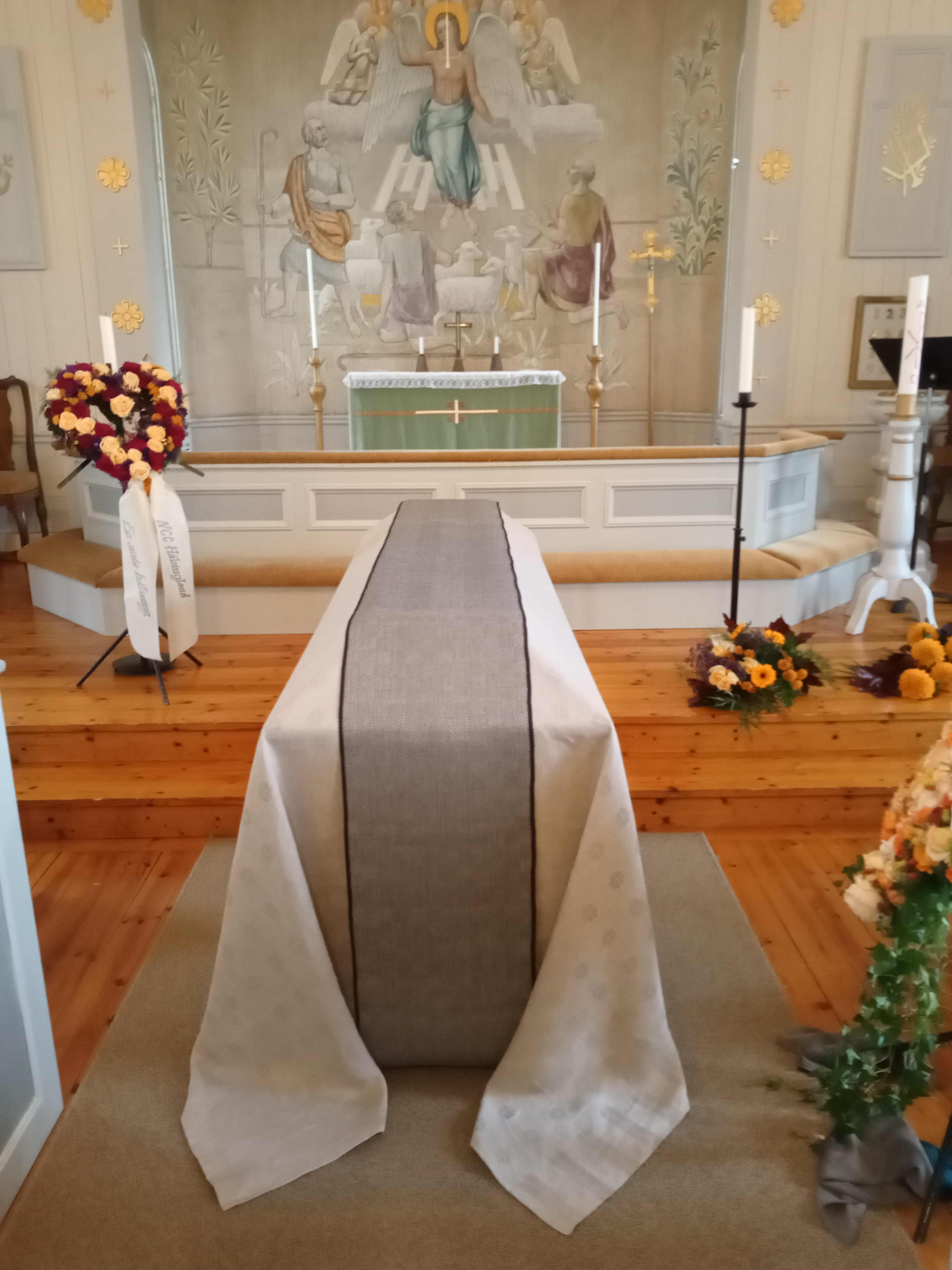 Bårtäcket är skänkt av Växbo lin.