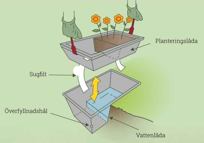 Med planteringslådor får växterna en jämnare tillgång till vatten, då lådorna har