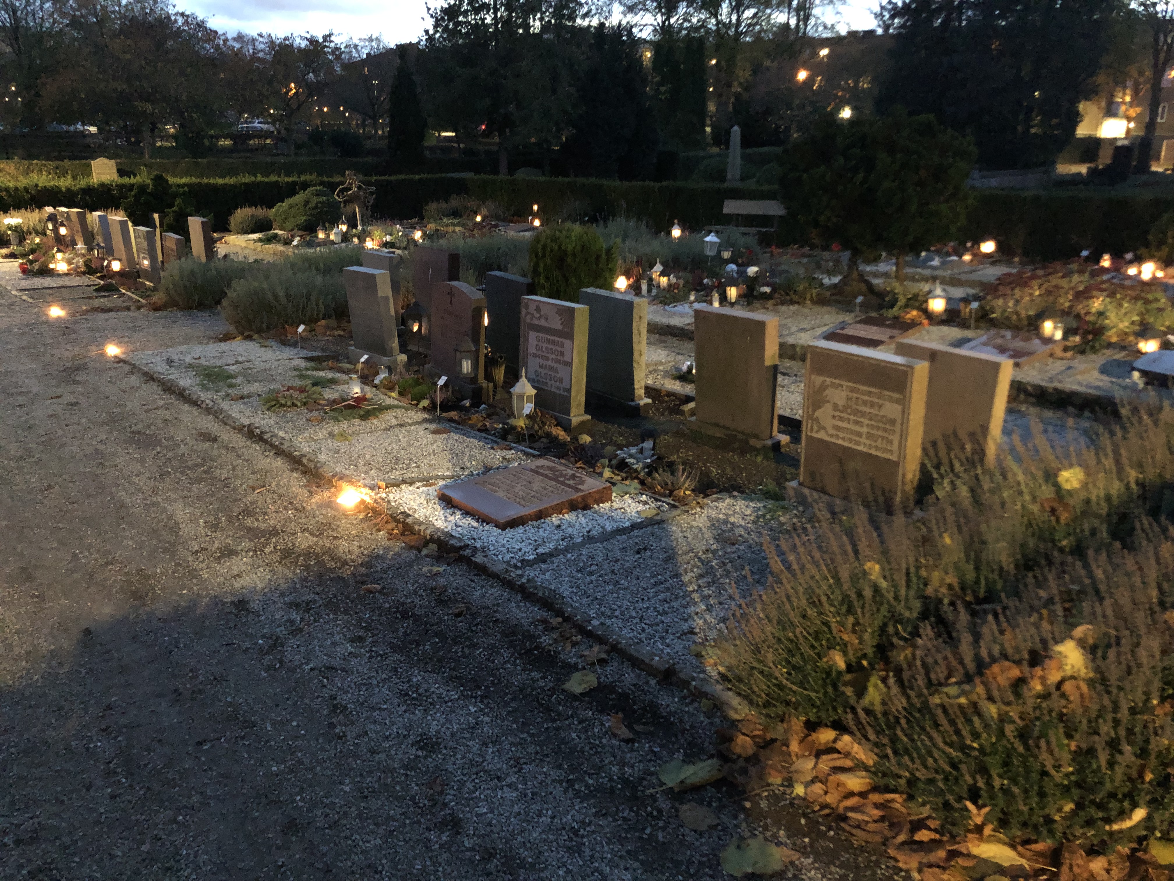 Lördag och söndag denna helg serveras gratis kaffe/te/saft och hembakad kaka både i Café Oasen i Arlövs församlingshem och i sakristian i Burlövs gamla kyrka. I församlingshemmet finns dessutom korv och bröd till försäljning. Präster, diakoner och andra medarbetare från församlingsenheten finns på plats tillsammans med kyrkogårdsförvaltningens personal för samtal, frågor och information och gravskick mm. Det finns möjlighet att köpa gravljus och båda kyrkorna är öppna för bön och ljuständning