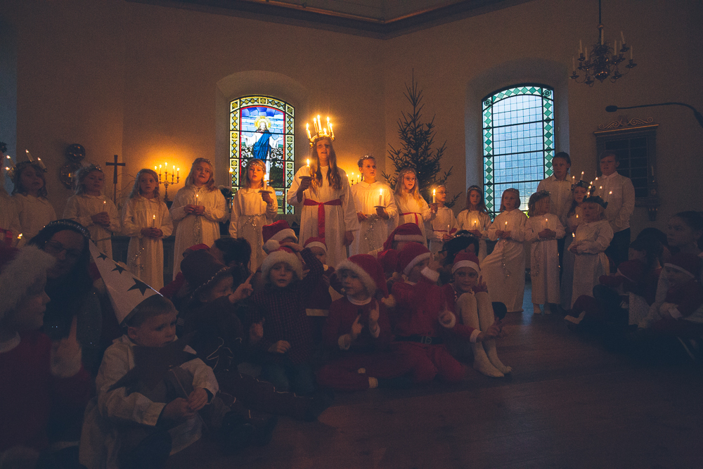 Barngrupperna firade med Luciatåg i Vislanda Kyrka
