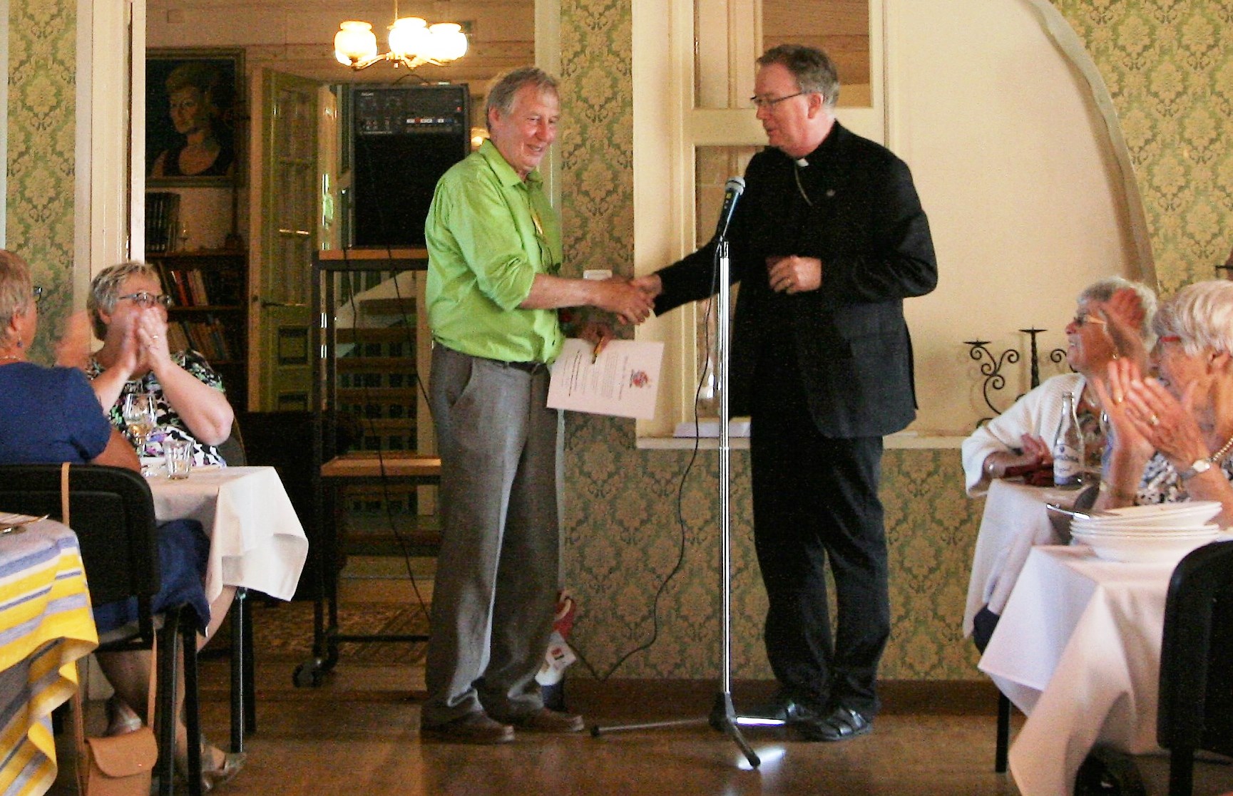 Medaljen, som visar ett S:t Olovskors inskrivet i ett S:t Hanskors, delas enligt statuterna ut till ”lekman verksam i Visby stifts gotlandsdel som under en längre följd av år och med stort personligt engagemang på Gotland verkat för Guds rikes utbredande”. I samband med firandet av Björn Håkanssons 70-årsdag på pensionat Borgvik i Katthammarsvik överlämnade stiftsprosten Richard Wottle – tidigare kyrkoherde i Östergarns pastorat – på biskopens uppdrag medaljen till honom. Björn Håkansson har under många år varit en drivande kraft i Östergarnsbygden och mycket av hans arbete har kommit Svenska kyrkan och Östergarns församling till del. Som ordförande i kyrkorådet har Björn kunnigt lett restaureringar av Östergarns och Kräklingbo kyrkor, genomfört strukturförändringar som först förde fram till en gemensam församling i dåvarande Östergarns pastorat och sedan Romaklosters pastorat, upplåtit Borgvik för årliga kyrkohistoriska seminarier, initierat ekumeniska sommargudstjänster också på Borgvik, samt inte minst med gott humör och säkert omdöme lett det dagliga arbetet i kyrkorådet. Allt sådant som biskop Sven-Bernhard på detta vis vill uttrycka sitt tack och sin uppskattning för.