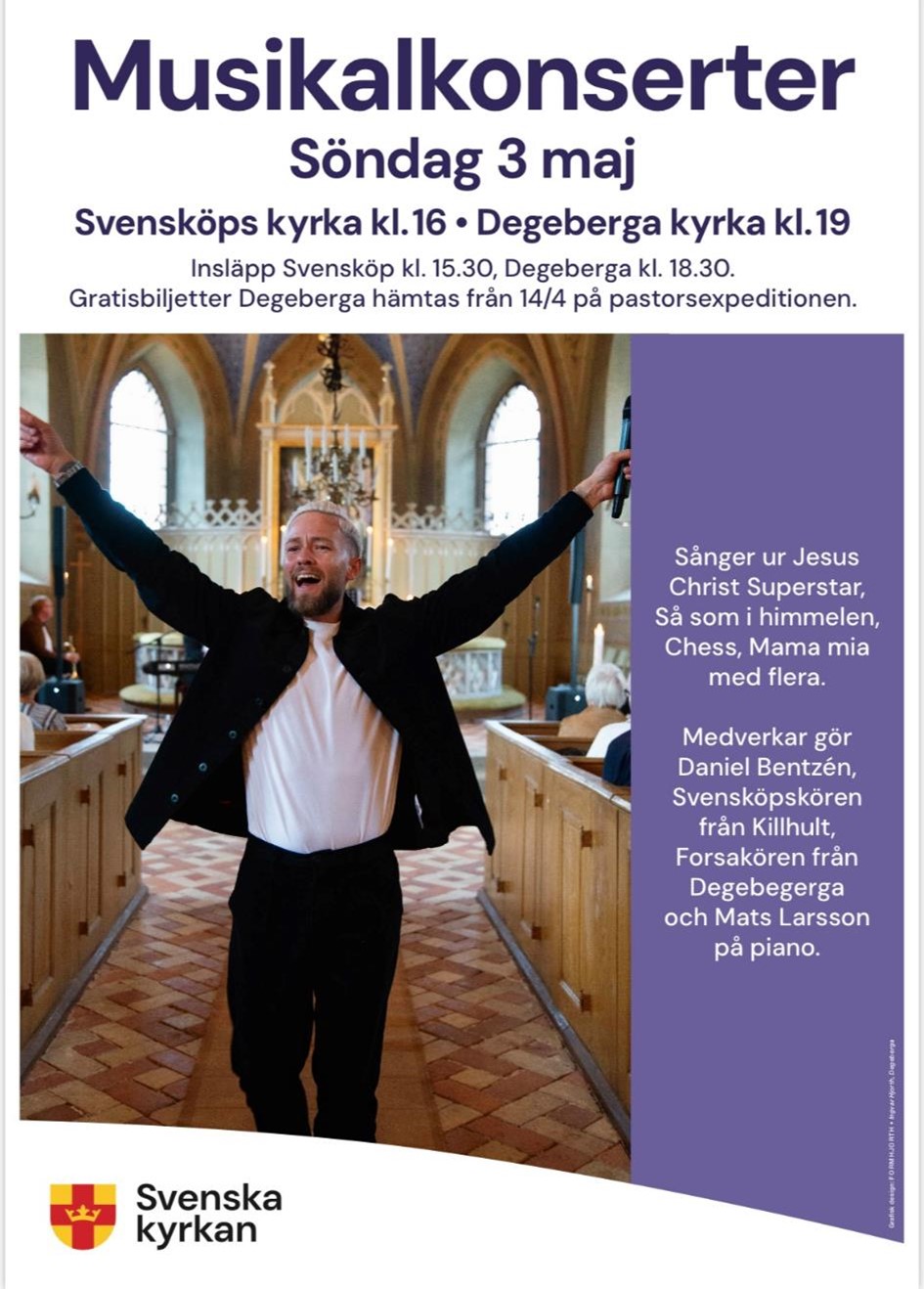 Gratisbiljetter (till Degeberga) hämtas på pastorsexpeditionen i Degeberga.
