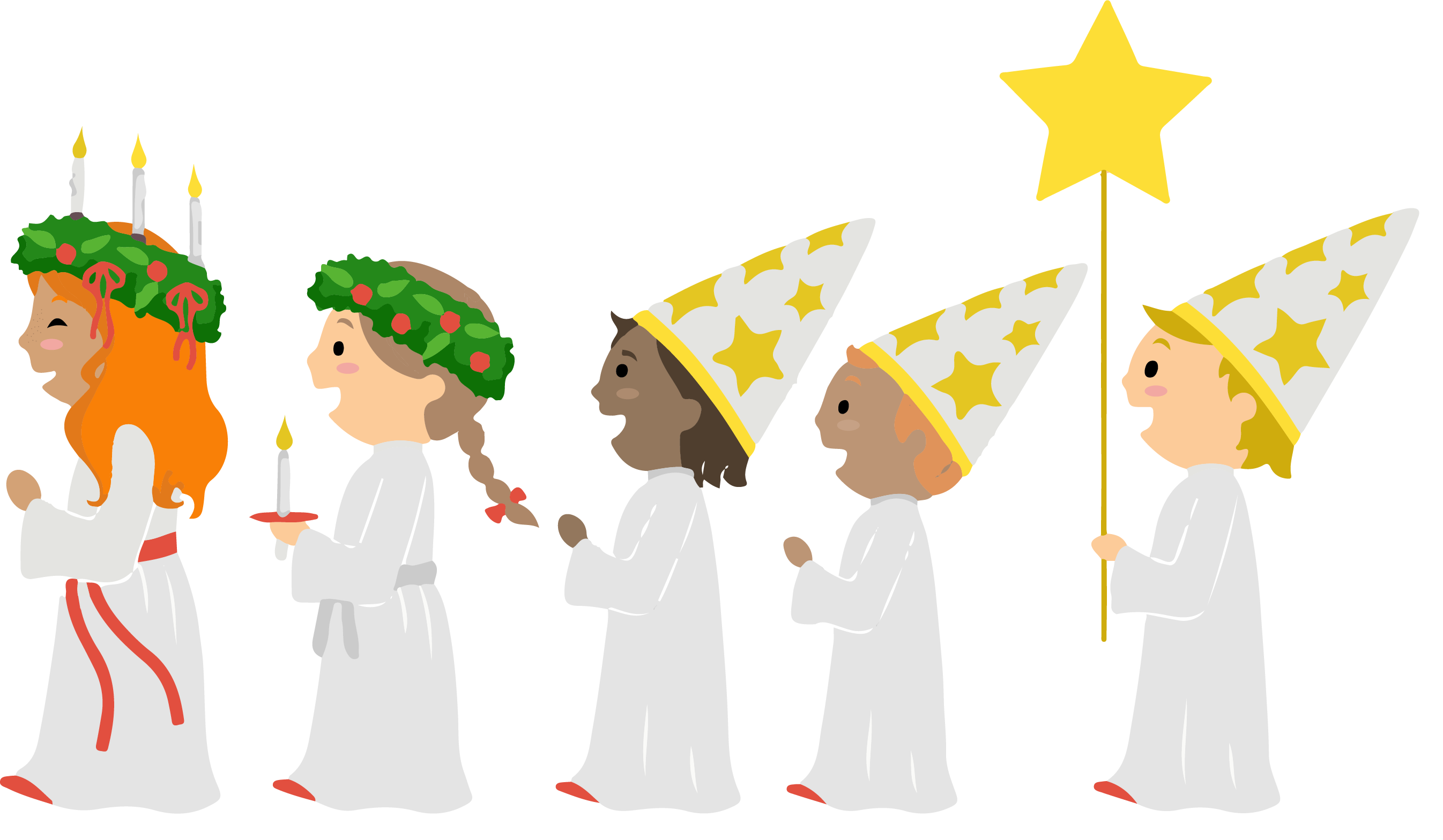 Luciatåg med Tonfiskarna 5 år och 6 år under ledning av Mie Johansson och Lisa Tegelmark.