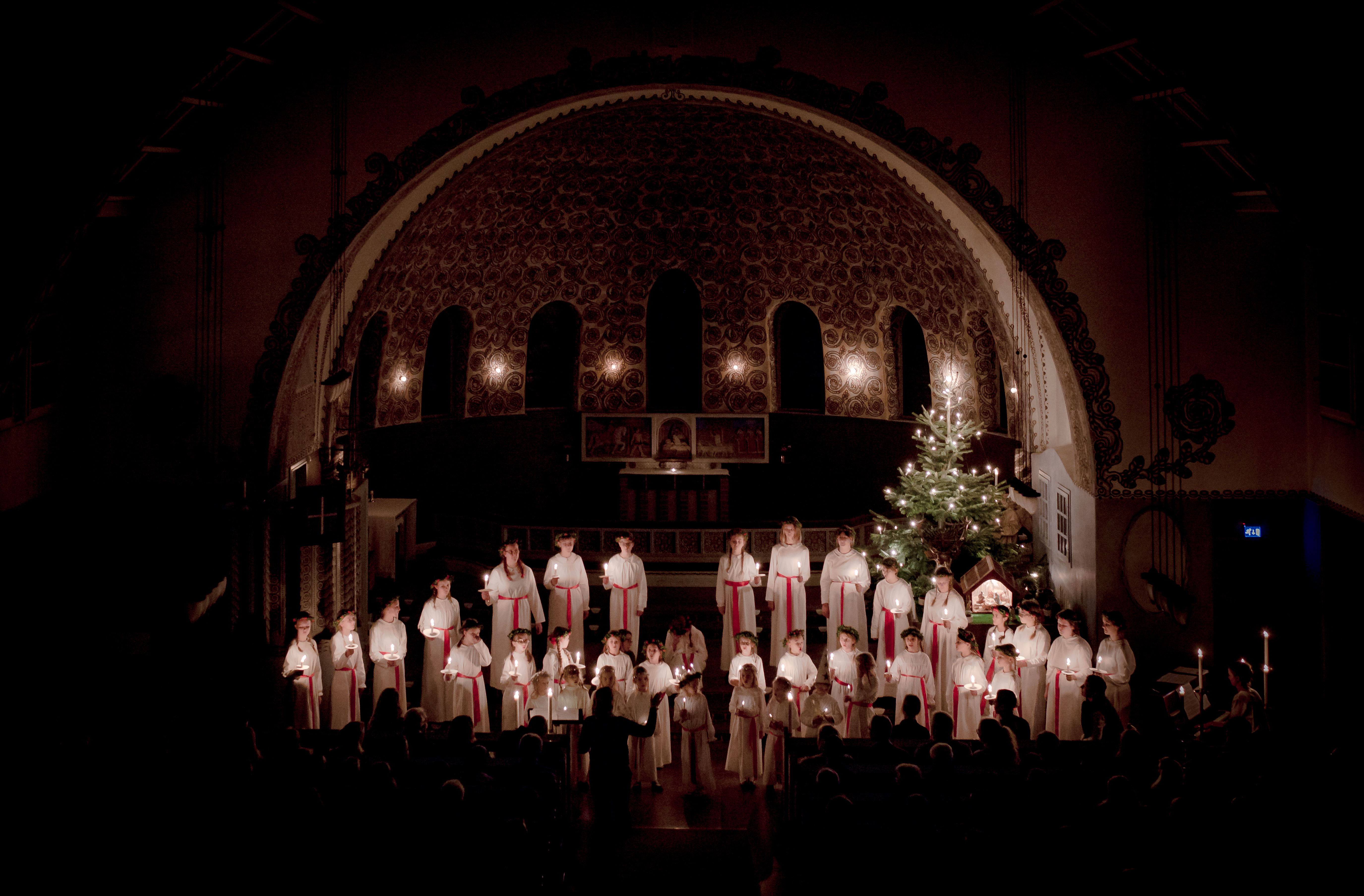 Välkommen till Hjorthagskyrkan där vi i år bjuder in till två Luciafiranden; Luciatåg på morgonen, fredag 13 december och Luciagudstjänst söndagen den 15 december.