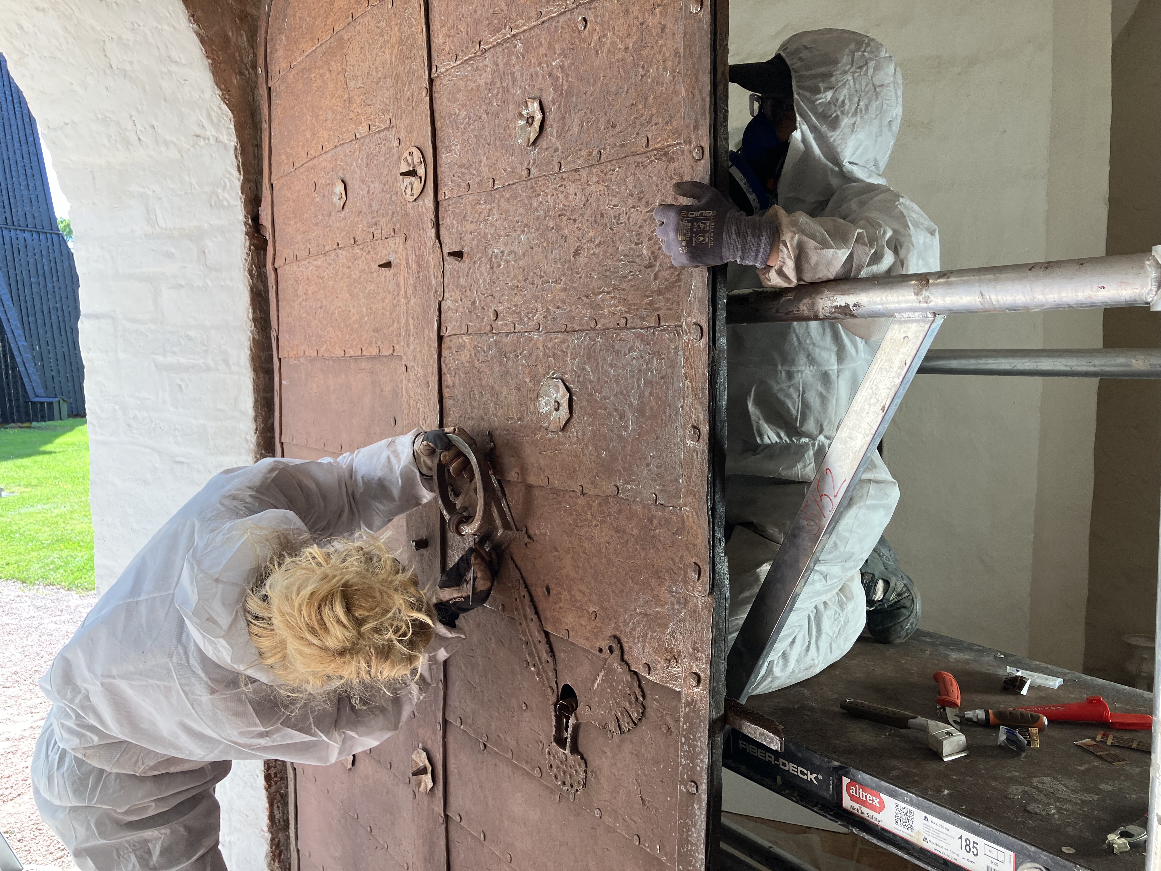 Vid en besiktning av kyrkans port upptäcktes att det finns textila rester bevarade under beslagen. Eftersom detta är lite ovanligt, beslutades att porten skulle undersökas närmare innan konservering. Bland annat har färgskikten analyserats i samarbete med Riksantikvarieämbetet.