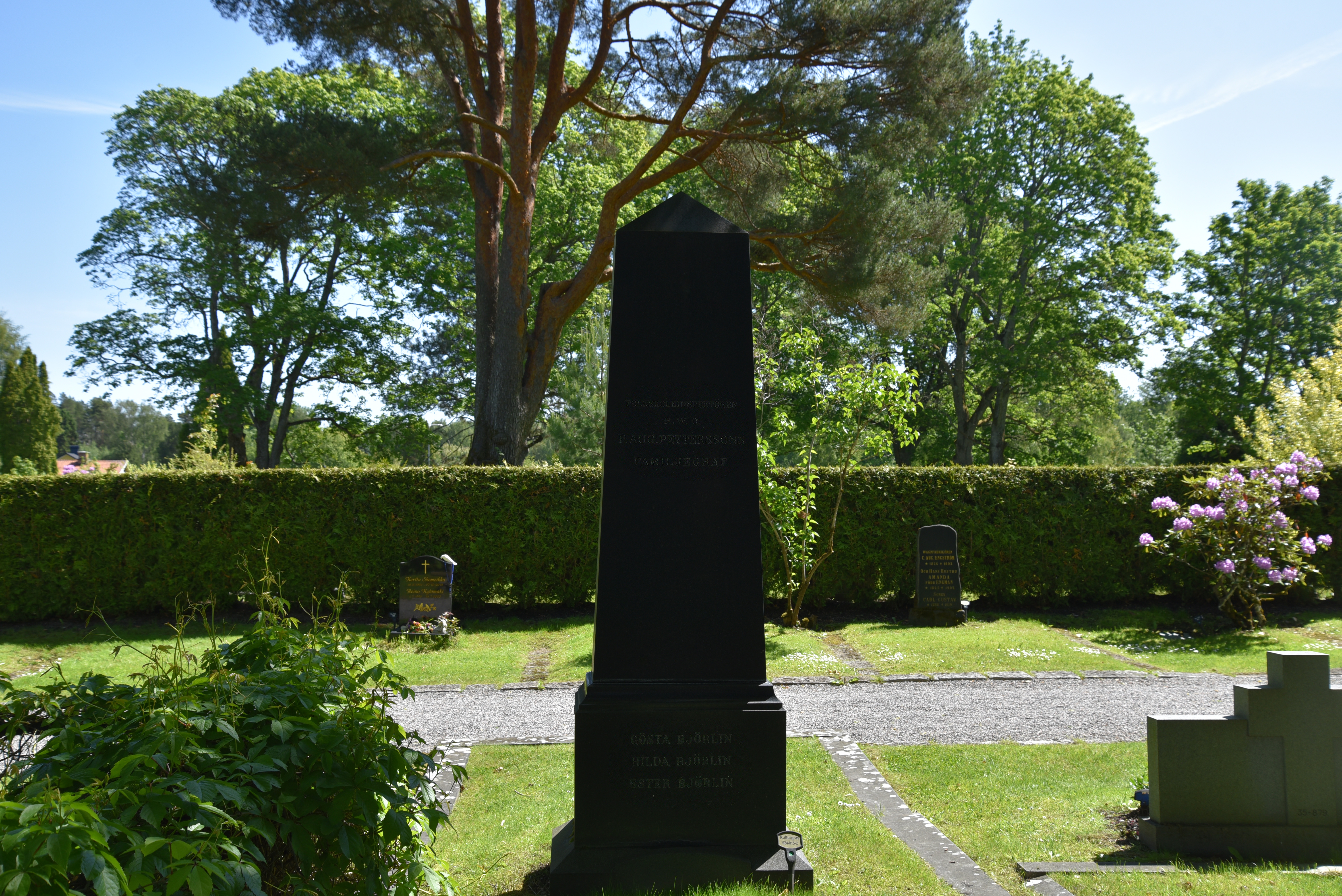 Om hans dotter, Hilda Björlin (f. 1894 d. 1946), som även hon vilar på denna plats, kan sägas att hon ägnade sitt liv åt kyrkligt arbete. Hon var starkt hängiven inom frivilligt kyrkligt arbete, och bidrog starkt inom den kyrkliga söndagsskolan. Verksamheten i Fors småbarnsstuga stod under hennes regi under många år. Hon var även aktiv medlem och kassör i Eskilstuna kvinnliga rödakorskår.