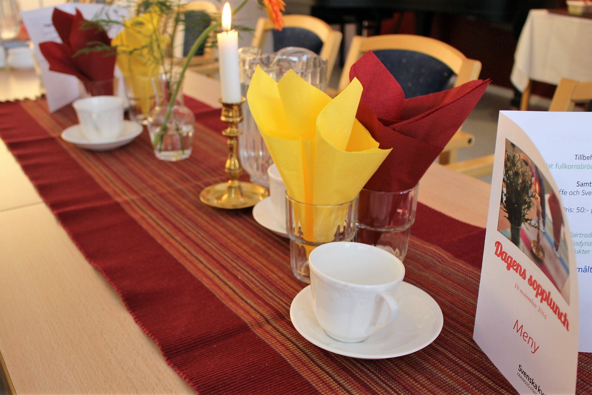 Soppa, nybakat bröd, kaffe och kaka: 50 kronor.