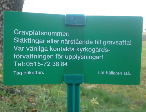 Församlingen är enligt begravningslagen (SFS 1990:1144 kap 7§ 3, 19 och 33) skyldig att föra gravbok med aktuella uppgifter. För nedanstående gravplatser saknas uppgift om gravrättsinnehavare. Dessa gravplatser har sedan år 2019 försetts med en grön skylt där släktingar eller närstående ombeds kontakta kyrkogårdsförvaltningen.