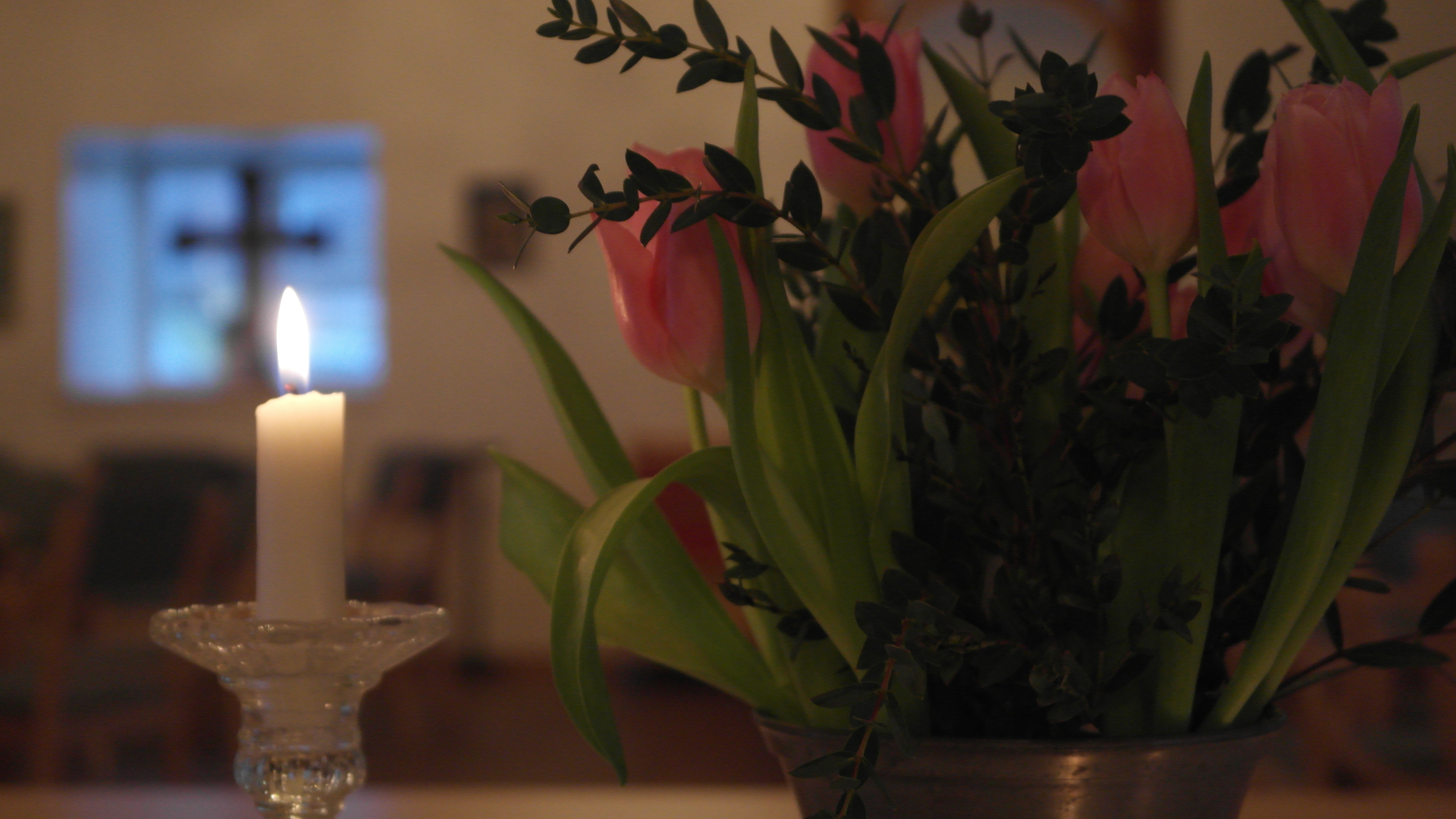 Med Frälsarkransen som stöd, en enkel stund inför altaret, ber vi för varandra och gemensamma förböner.