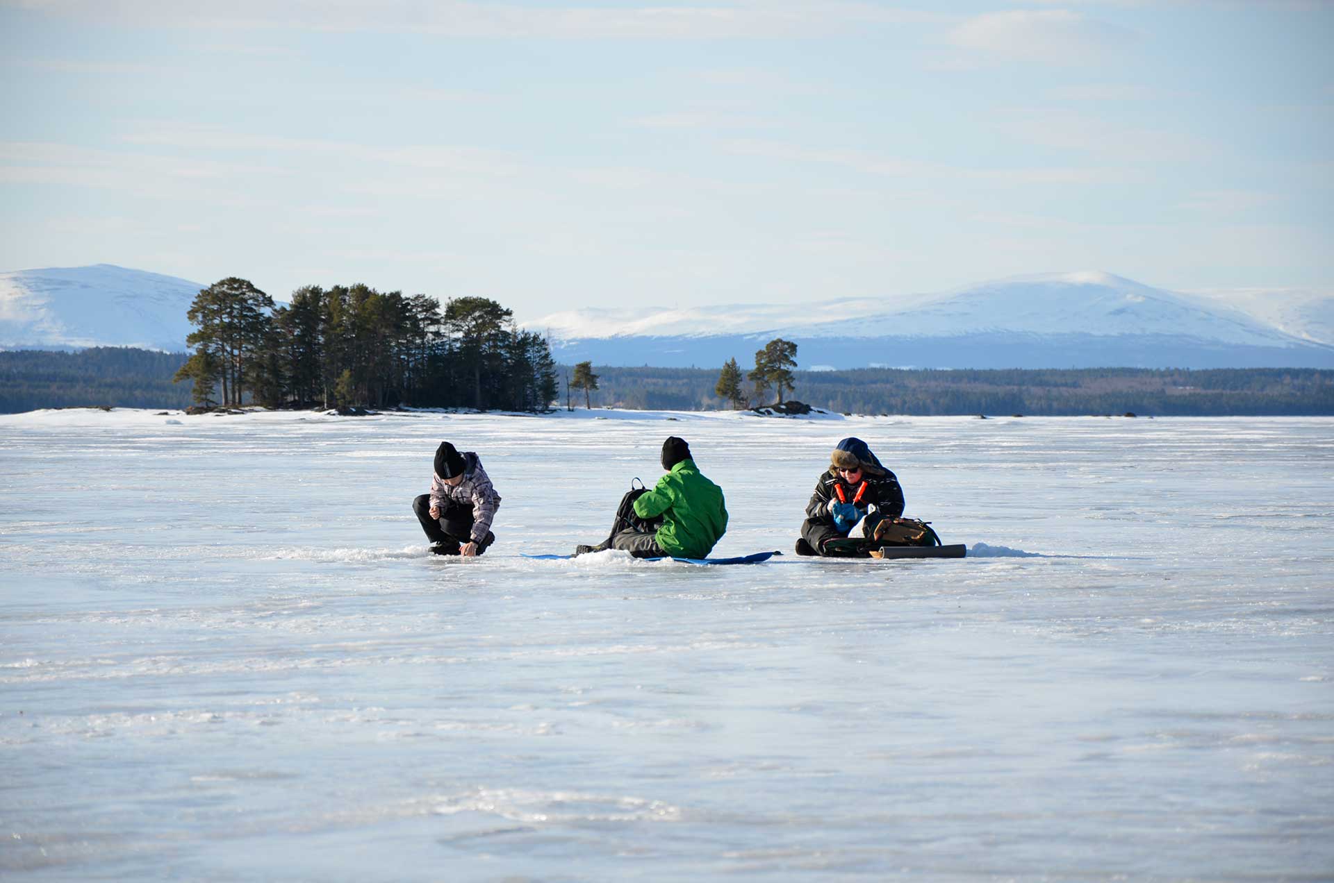 Vi åker bland annat skridskor, skidor och pulka, och det finns aktiviteter som isfiske och lassokastning m.m. att ägna sig åt.