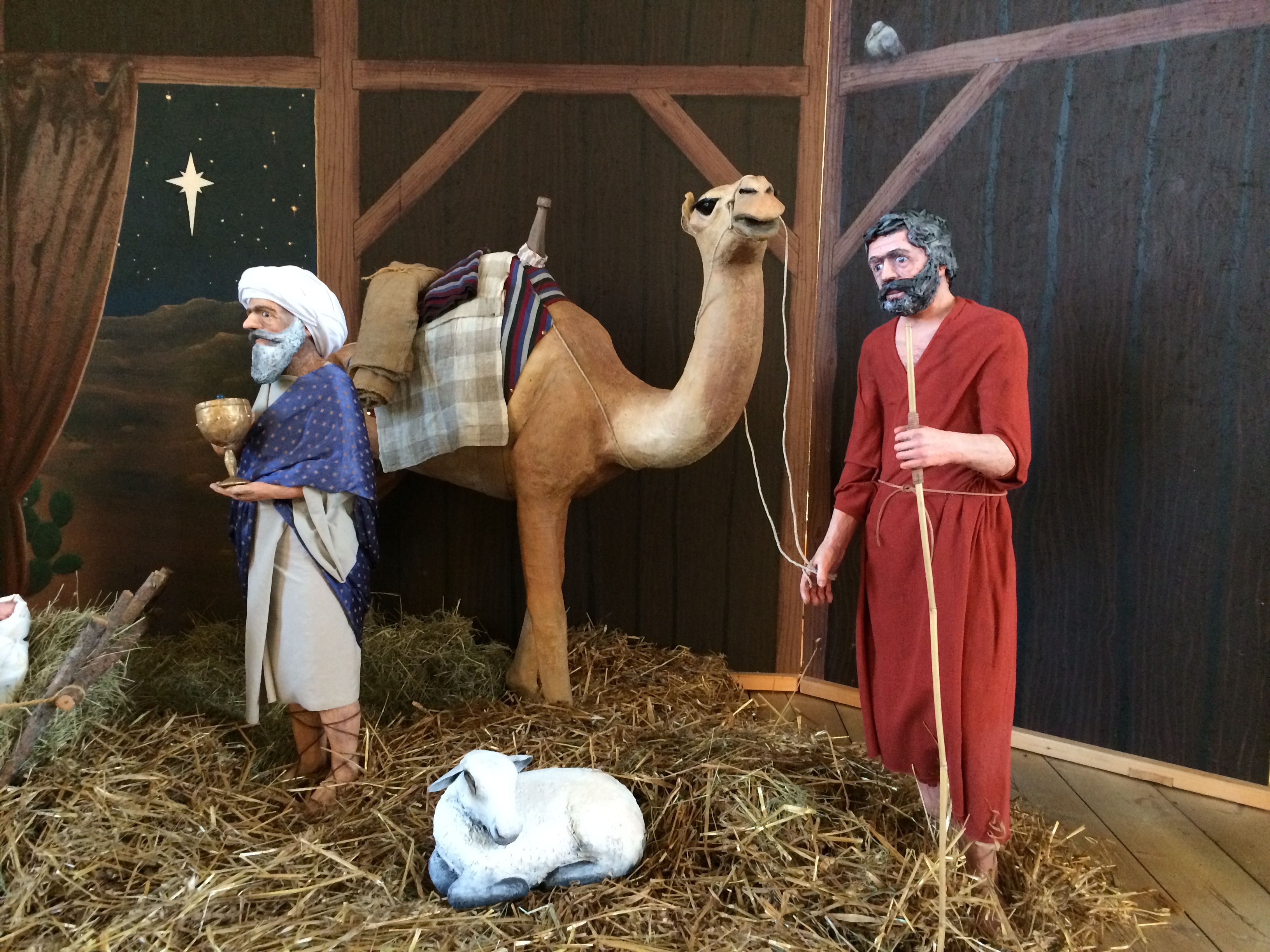Vi får träffa Josef och Maria. Hos herdarna möter vi ängeln som berättar om barnet som ligger i stallets krubba. Tillsammans med stjärntydarna följer vi stjärnan till Betlehem.