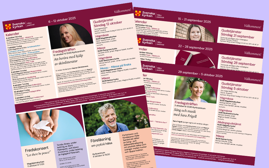 Det finns många sätt du kan få information om våra gudstjänster och verksamheter på.