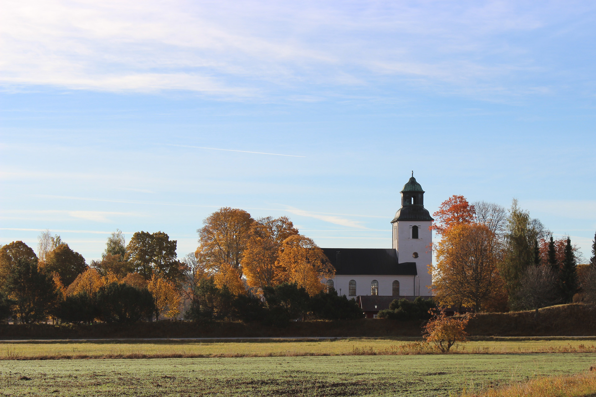 På en markant höjd i ett omgivande slättlandskap ligger Sockenkyrkan. Järnvägen mellan Göteborg och Stockholm passerar söder om kyrkogården.