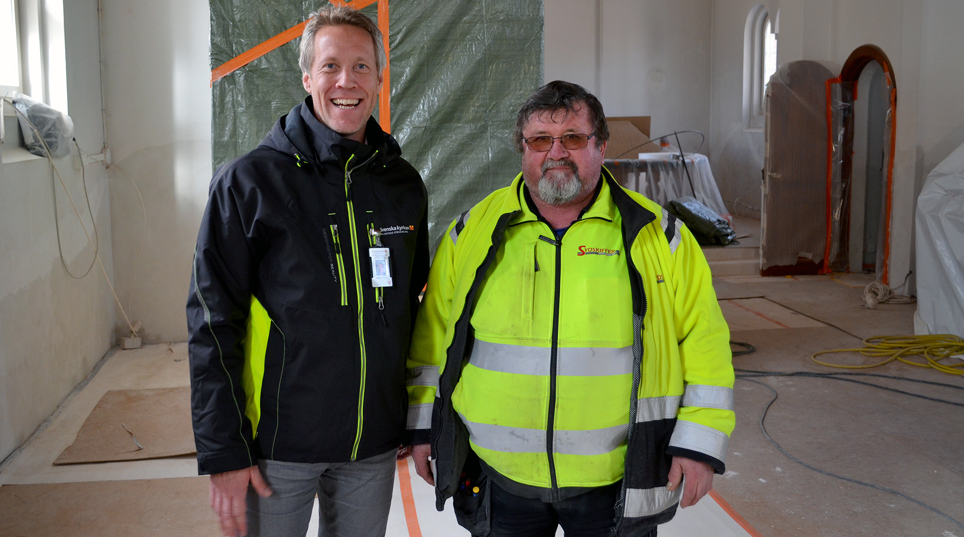 Till exempel har hela fasaden fått fogas om, och vissa delar har varit nödvändiga att mura om. Arbetet har skett i skydd av plast, och med uppvärmning där innanför har byggjobbarna inte varit beroende av vädret. Nu är de yttre byggställningarna och plasten borttaget och arbetet pågår inne i kyrkan.