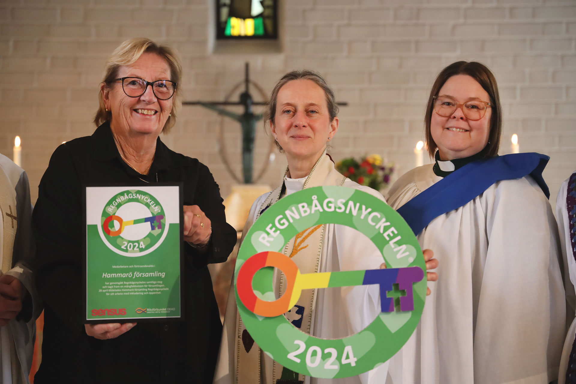 Målet är att församlingen tilldelas HBTQ-märkning som är ett kvitto på en mer inkluderande kyrka och visar på mångfald och öppenhet. Den 28/4 - 2024 avslutades utbildningen officiellt genom en festgudstjänst i regnbågens färger där församlingen fick ta emot Regnbågsnyckeln. Detta firade vi bland annat med körsång av Vox Humana, Nova Cantica och Viva Voce, under ledning av Maria Carlson och Berit Heinemann.