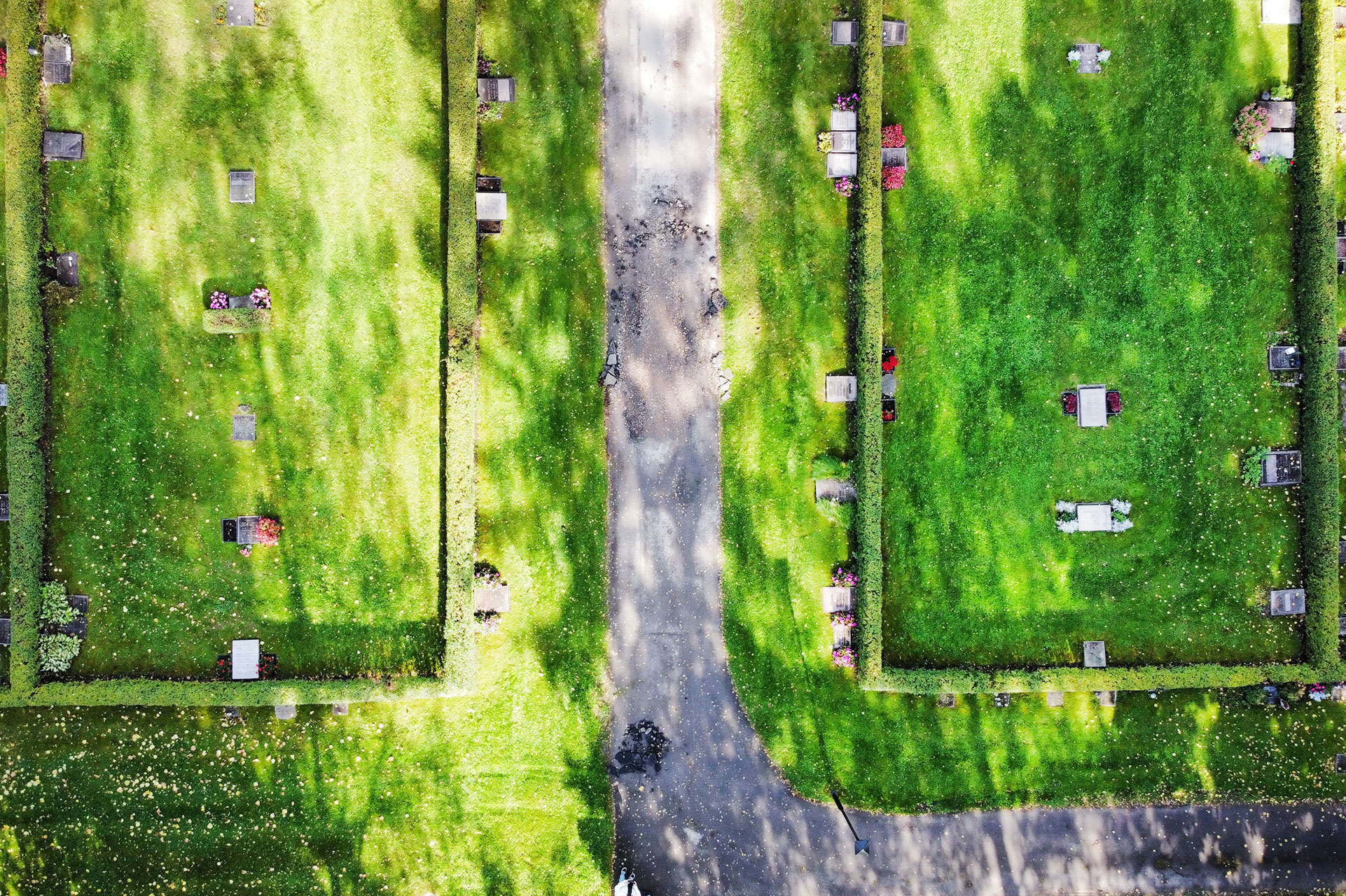 Södra kyrkogården har elva stycken numrerade kvarter (1 - 11) samt kvarter som benämnts utifrån alfabetet (A-F). Samtliga kvarter innefattas av kistgravs- och urngravsplatser.