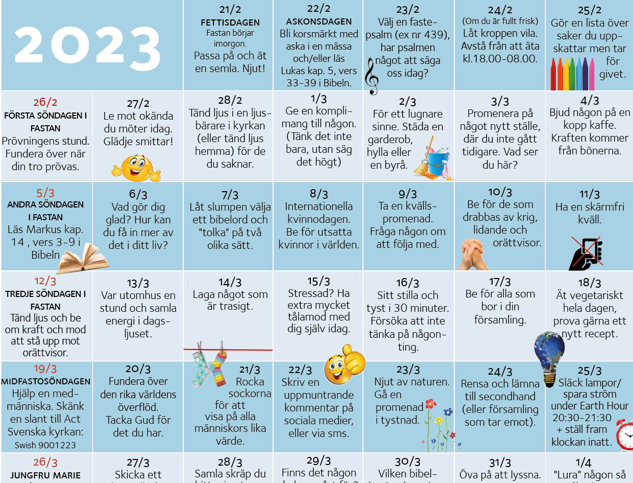 Om ett par veckor börjar 40 dagar lång fasta och förberedelsetid inför påsken. En möjlighet för eftertanke och att hitta fokus. Kanske vill du följa denna fastekalender?