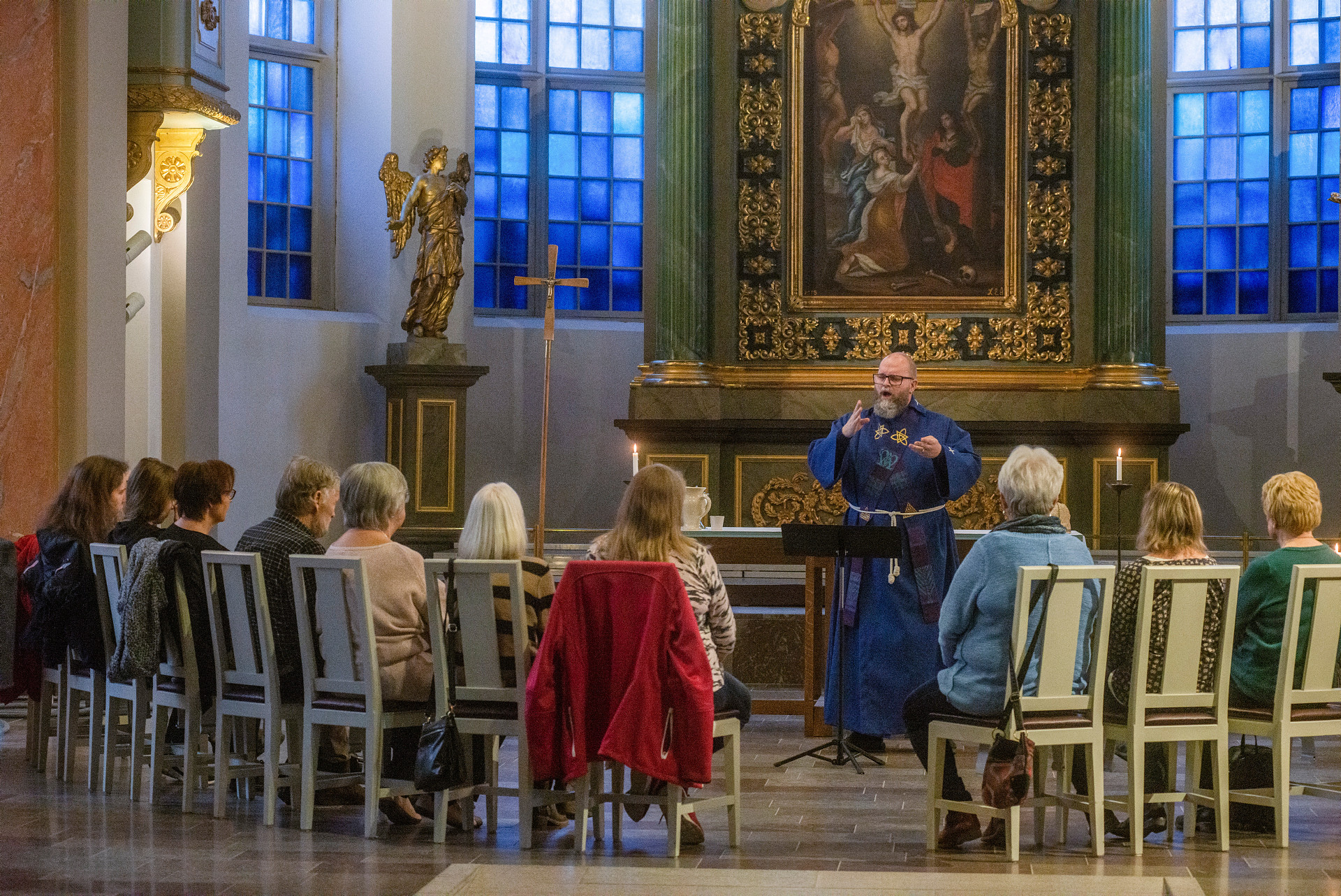 – En fin bild när det gäller avståndet i kyrkbänkarna är att se till att det ryms minst en ängel mellan varje person, säger Eva Nordung Byström.