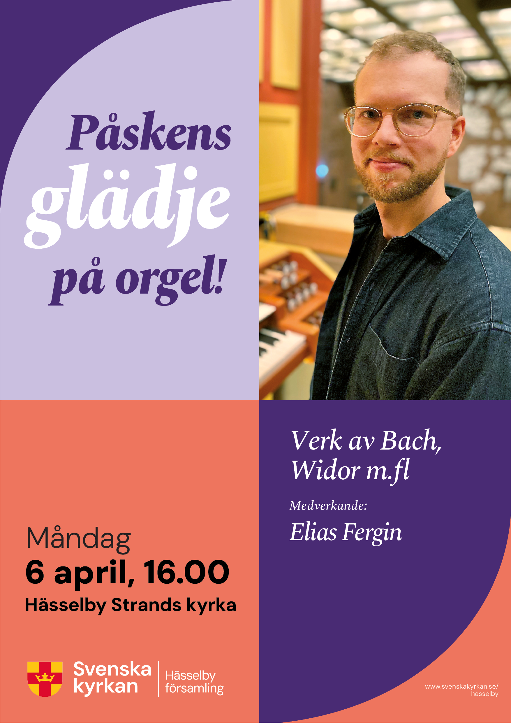 "Påskens glädje på orgel!" Verk av Bach, Widor m fl. Annandagen, måndag 6 april, kl. 16.00.