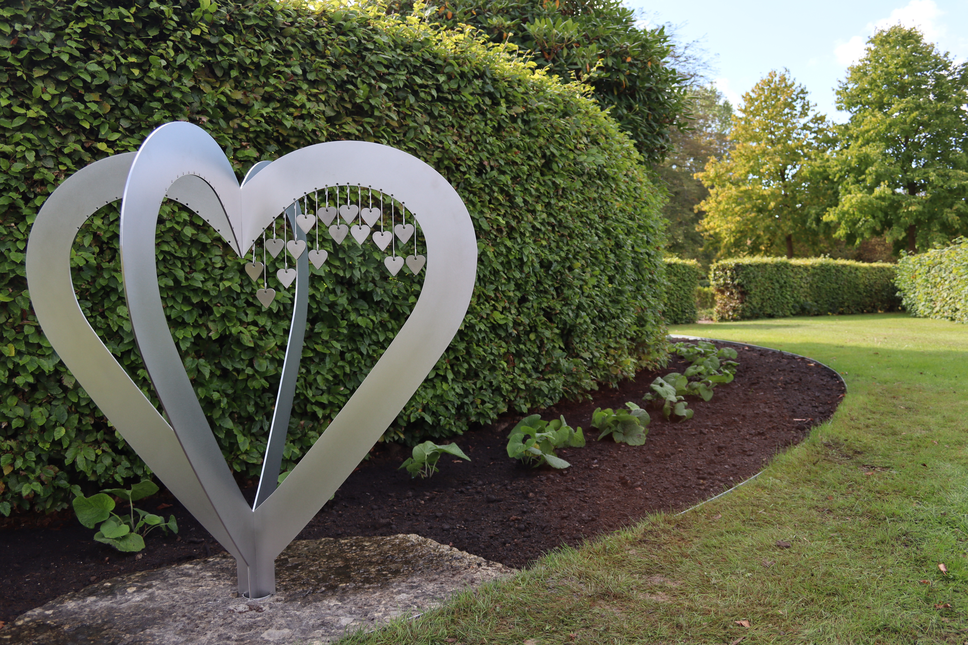 Centralpunkten i lunden är två korslagda hjärtan i metall, i härtats bågar får ett mindre hjärta med den gravsattas namn och årtal placeras. Hjärtat tillhandahålls och monteras av kyrkogårdsförvaltningen till självkostnadspris.
