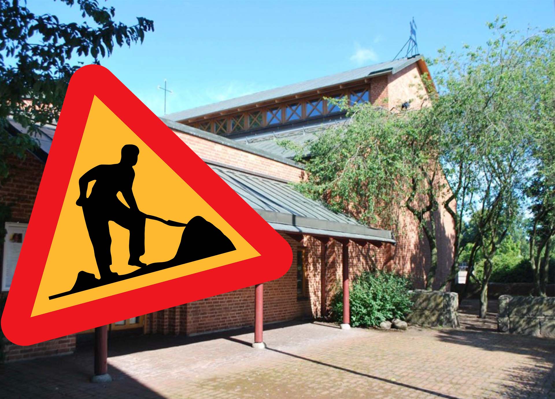 Just nu grävs och byggs det om på Drottninghög men kyrkan är öppet som vanligt. Kommer du med bil får du köra så här: