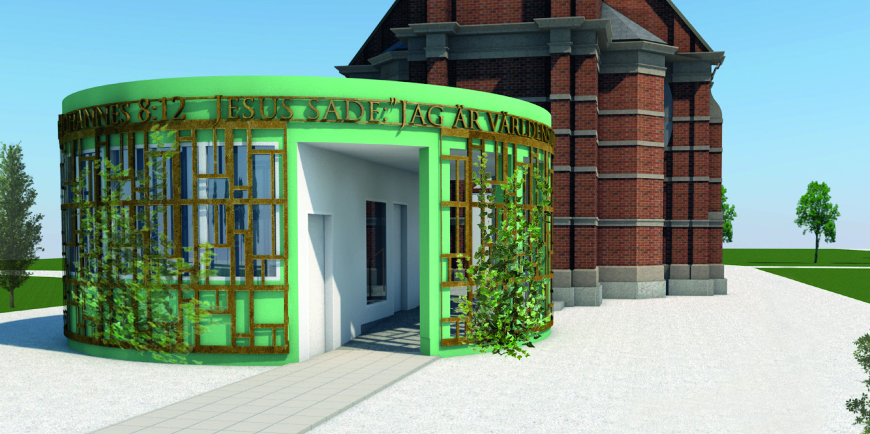 Än så länge ser bygget inte mycket ut för världen, men mycket av grunden är på plats och pelarna, på södra sidan längs rampen som leder till kyrkporten, har börjat resas.