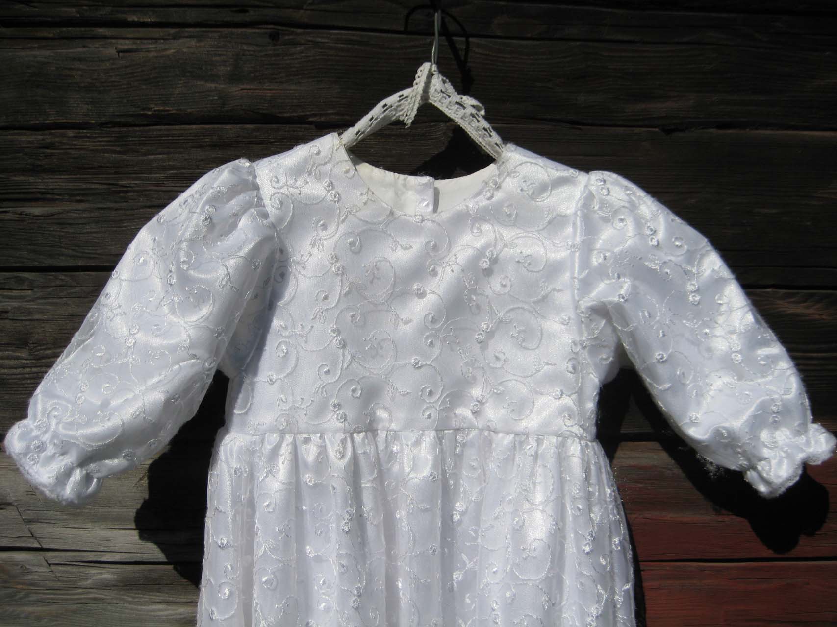 Dopklänningen inköptes till Idenors församling maj 2009. Sydd av Marie Stjernsten, Karaterkraft, Delsbo