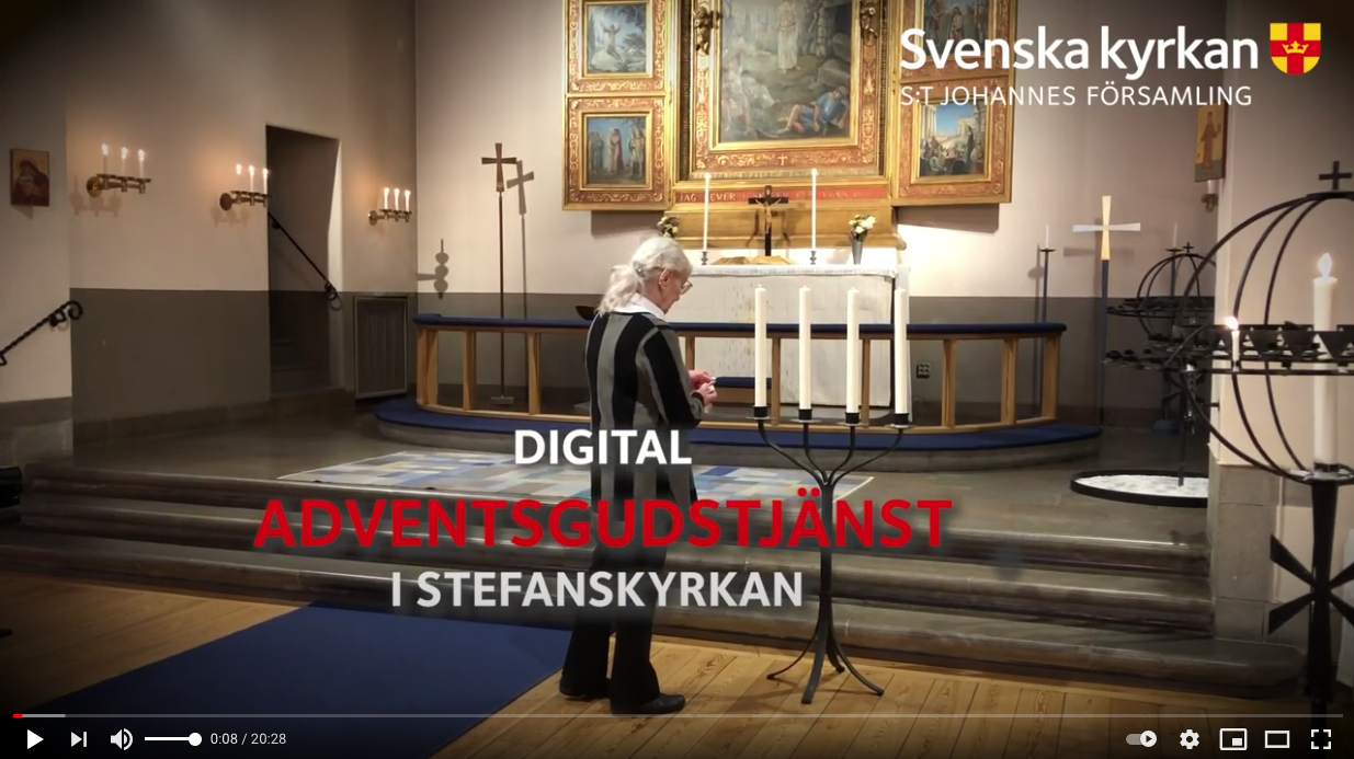 Vacker musik blandas med inspirerande adventsbetraktelse, bön och ljuständning och så avslutar vi med en hoppfull överraskning! Välkommen att delta där du är, via din dator, ipad eller mobil.