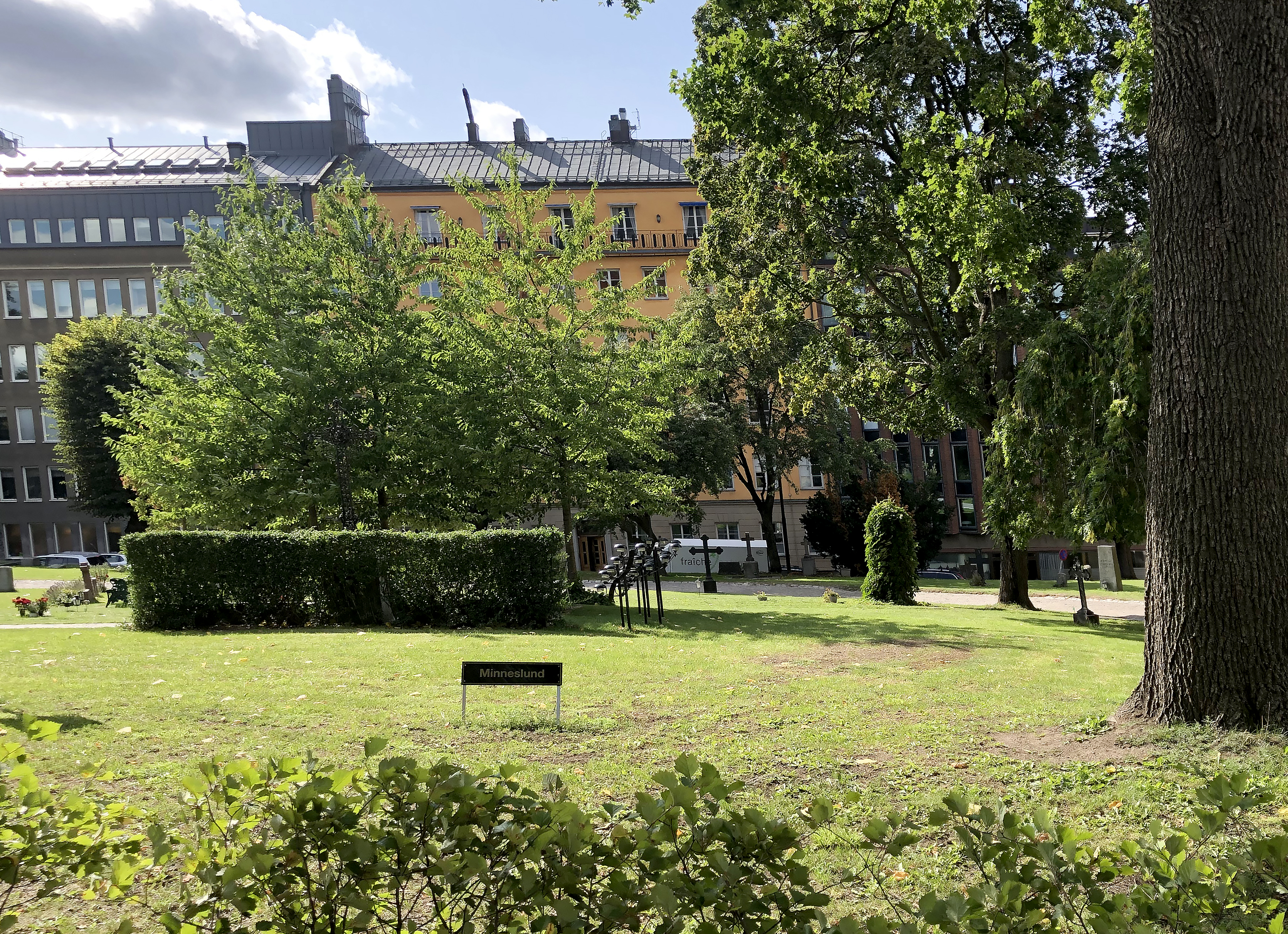 Grav och gravsättning i minneslunden bekostas via begravningsavgiften.