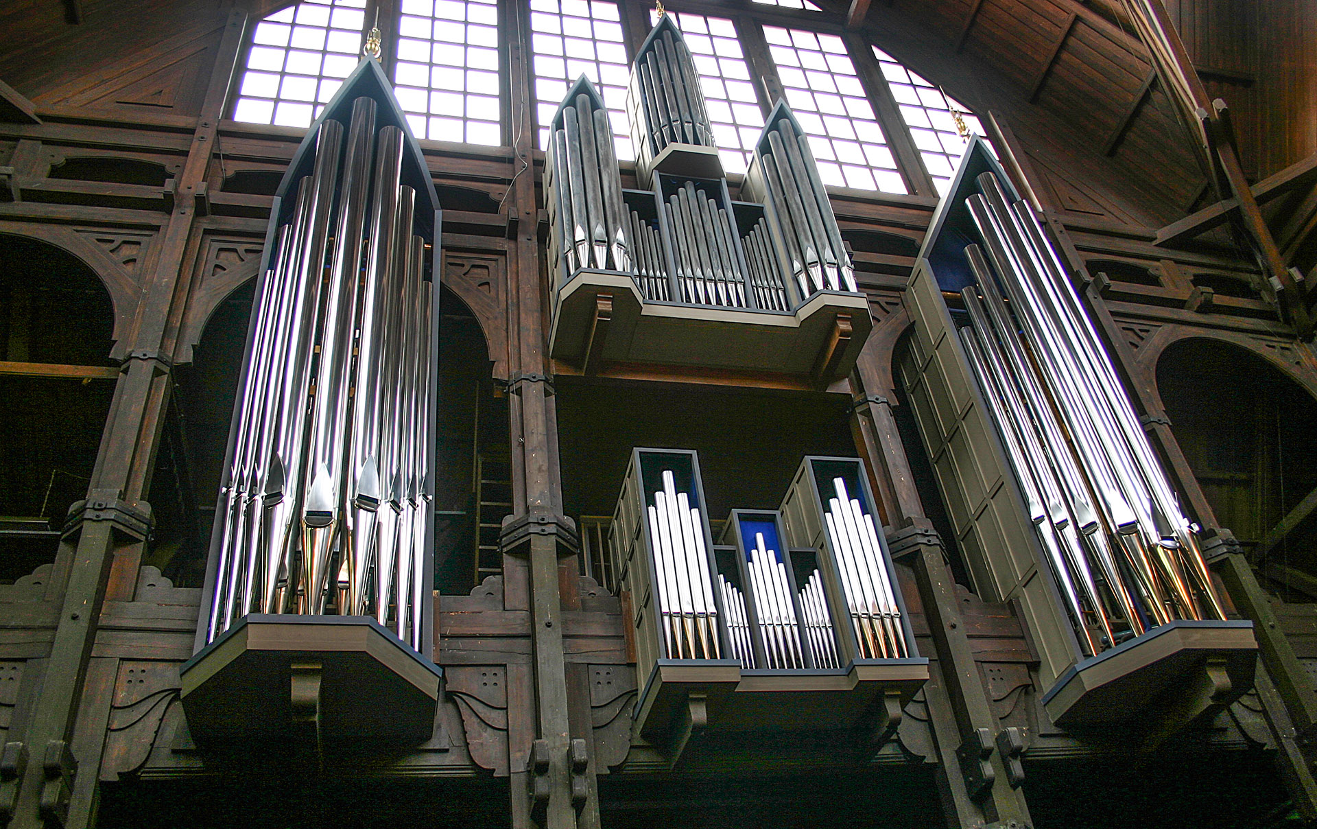 1955–1957 – Ny orgel byggdes av orgelbyggare Rudolph von Beckerath, Hamburg. Fasaden är ritad av Otto Firle, Düsseldorf.