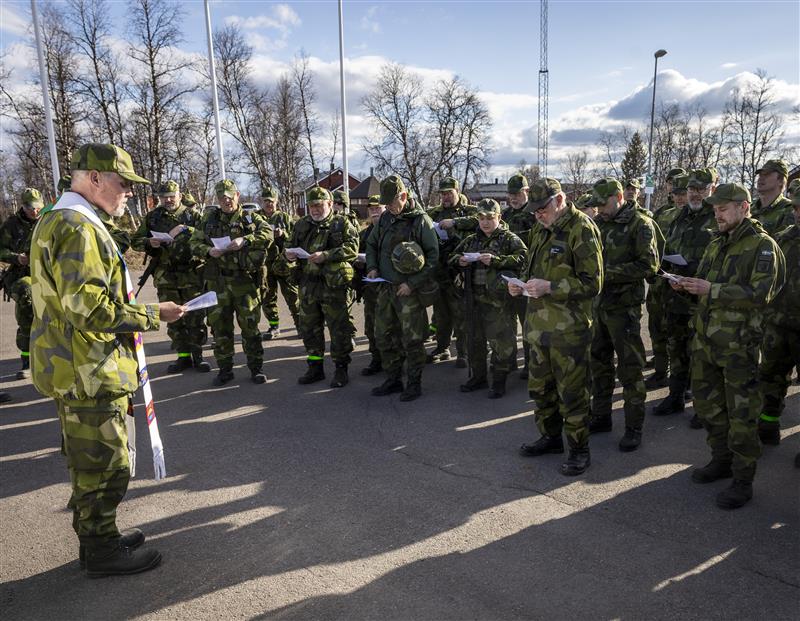 Vår komminister Lars Jarlemyr har varit på hemvärnsövning i slutet på maj. Bilden visar ett korum, en andakt, för intresserade soldater i 10:e hemvärnsbataljonen som omfattar Kiruna, Pajala och Gällivare kommuner.