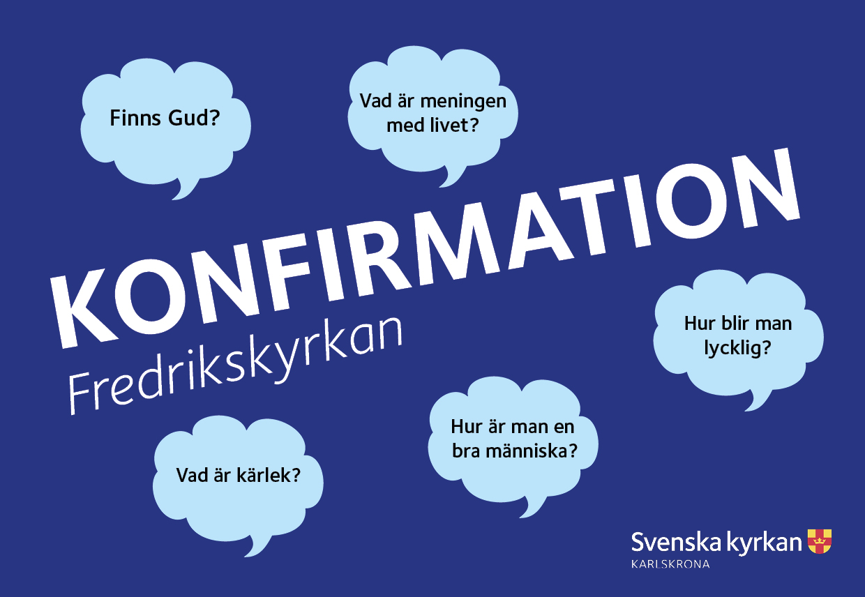 Alla fjortonåringar som är medlemmar i Svenska kyrkan får en konfirmandinbjudan. Här i Svenska kyrkan Karlskrona skickas denna ut någon gång i maj. Om du är fjorton år och vill konfirmeras men inte fått någon inbjudan kontaktar du kontaktpersonen för konfirmation (se längst ner på sidan), så hjälper hon dig vidare.