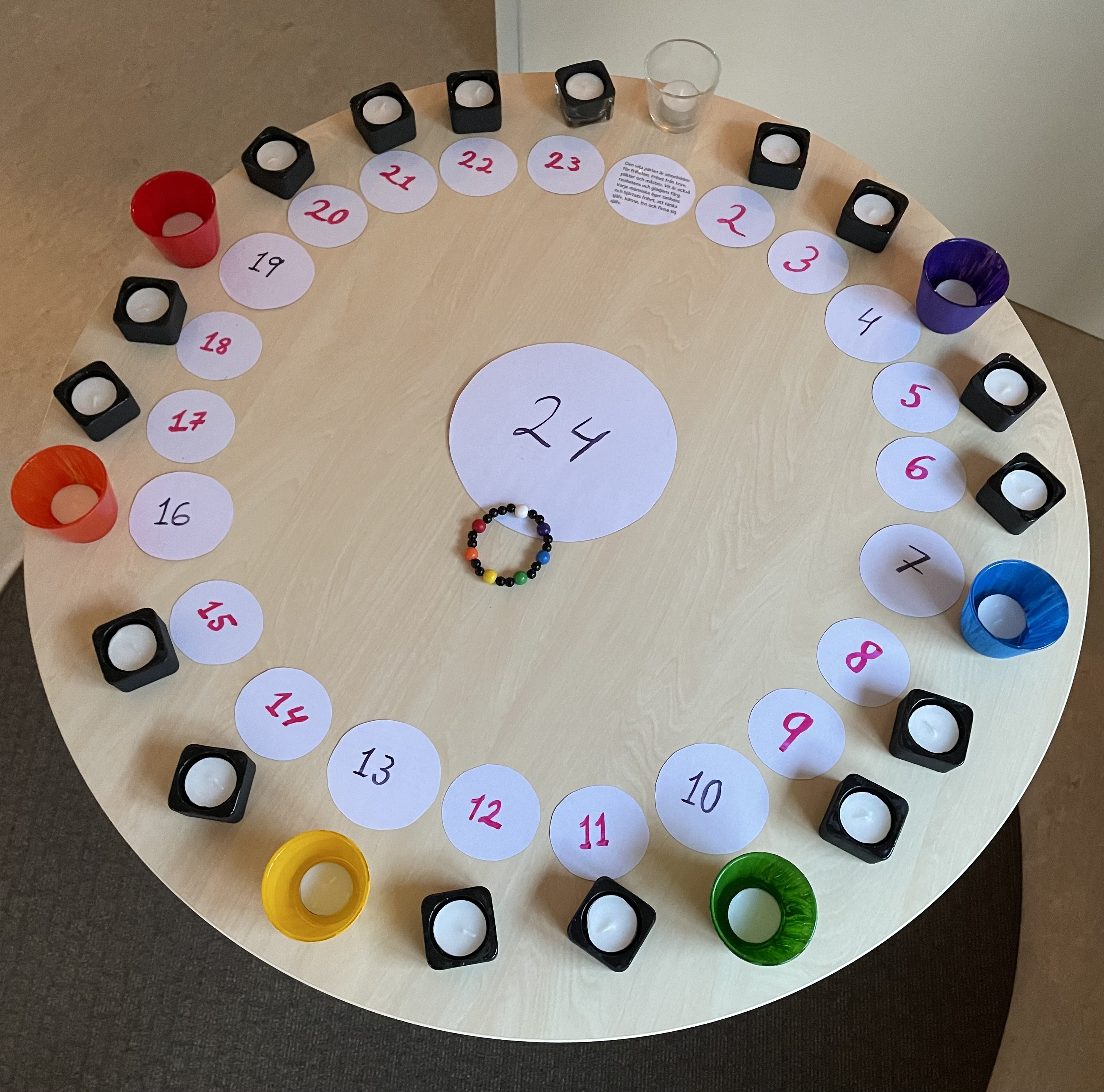 Pilgrimskransen finns i form av ljus vid Uppenbarelsens kapell. Varje dag tänds ett nytt ljus i kransen och en kort text eller bibeltext som knyter an till kransens färgade pärlor går att läsa.