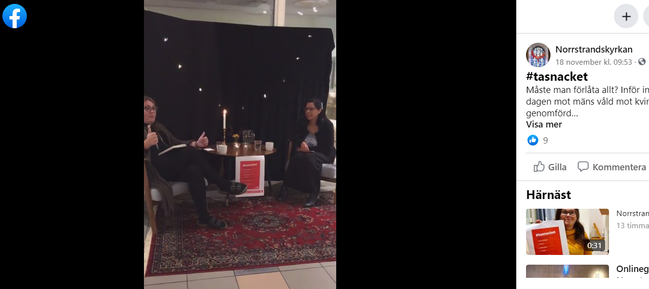 Se Facebook-sändning om kvinnovåld från Norrstrandskyrkan
