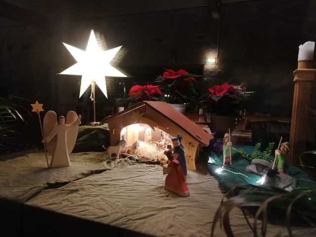 Krubborna gör sig bäst i mörker, så ta gärna en promenad runt kyrkan och se hur ljuset från alla julkrubbor lyser upp i vintertid!