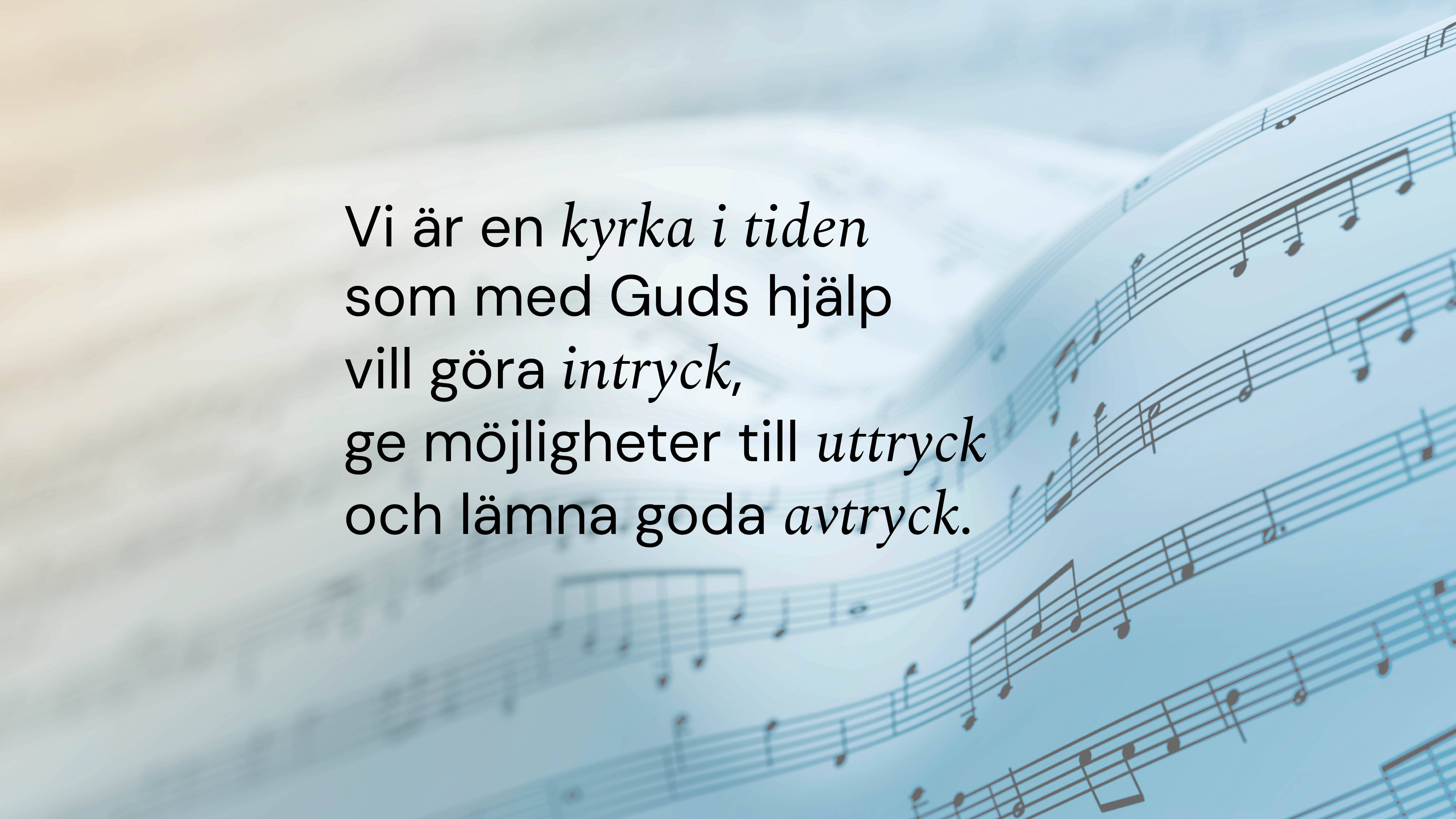 Vi är en kyrka i tiden som med Guds hjälp vill göra intryck, ge möjligheter till uttryck och lämna goda avtryck.