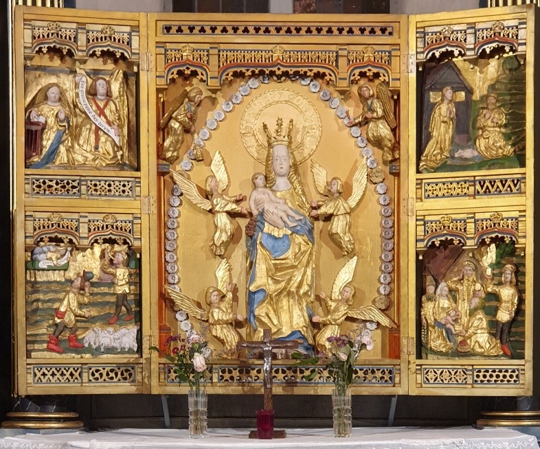 Någon timme före julottan börjar den långa vinternattens mörker brytas. Gryningen är lång. När folket samlas för den stämningsfulla gudstjänsten är det ännu så mörkt ute att man inte kan urskilja detaljer. Men inne i kyrkan är det ljust. De många levande ljuslågorna skimrar i altarskåpets guld. Julens budskap om att Gud kommer till oss blir levandegjort. De små figurscenerna berättar för oss. De berättar i julottans ljussken och de berättar året runt, för dig och mig och var och en som närmar sig altaret i Husby-Långhundra kyrka.