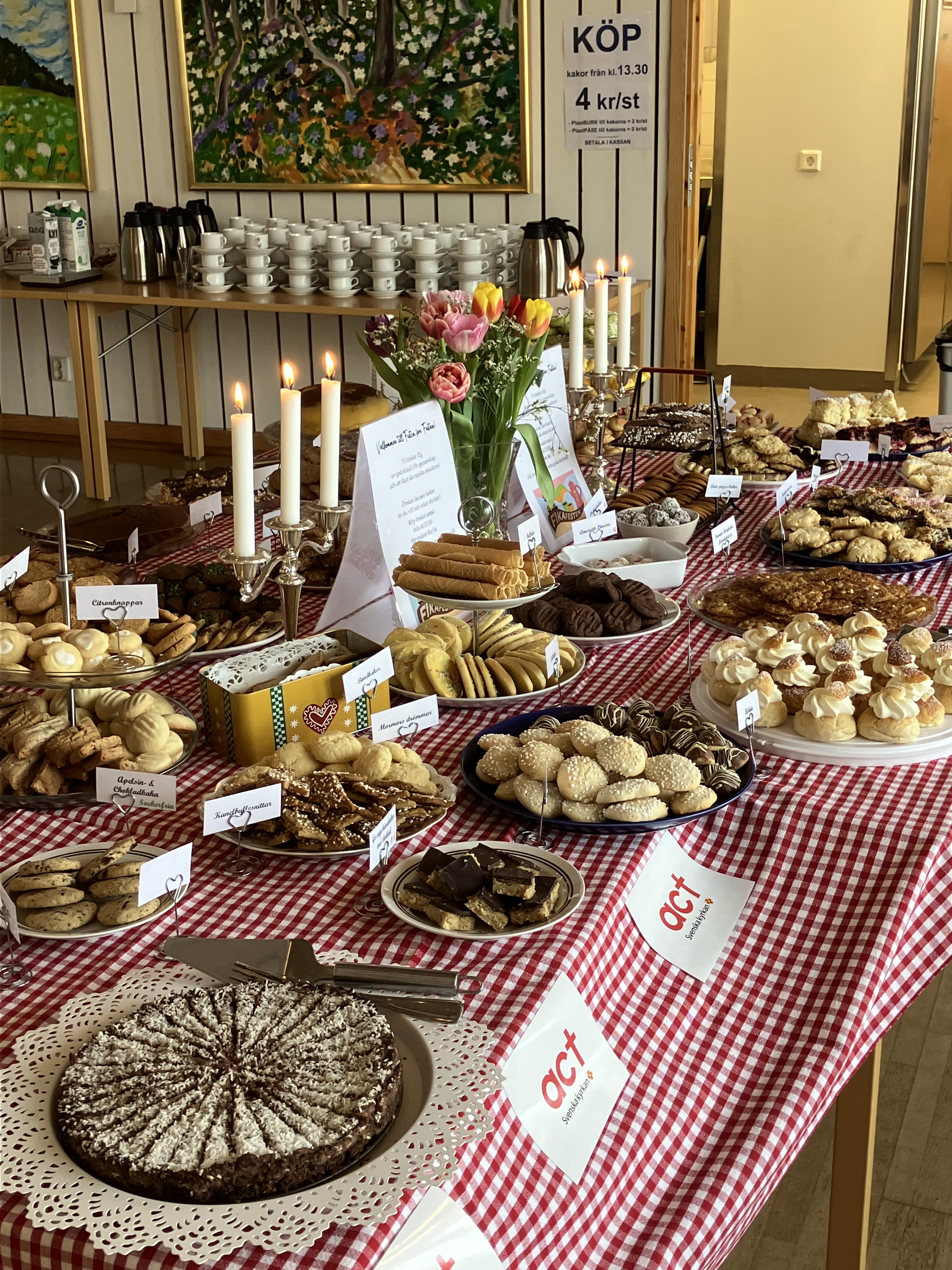 För den som vill ta med sig kakor hem finns möjlighet att köpa med sig valfritt antal till ett bra pris från klockan 13.30.