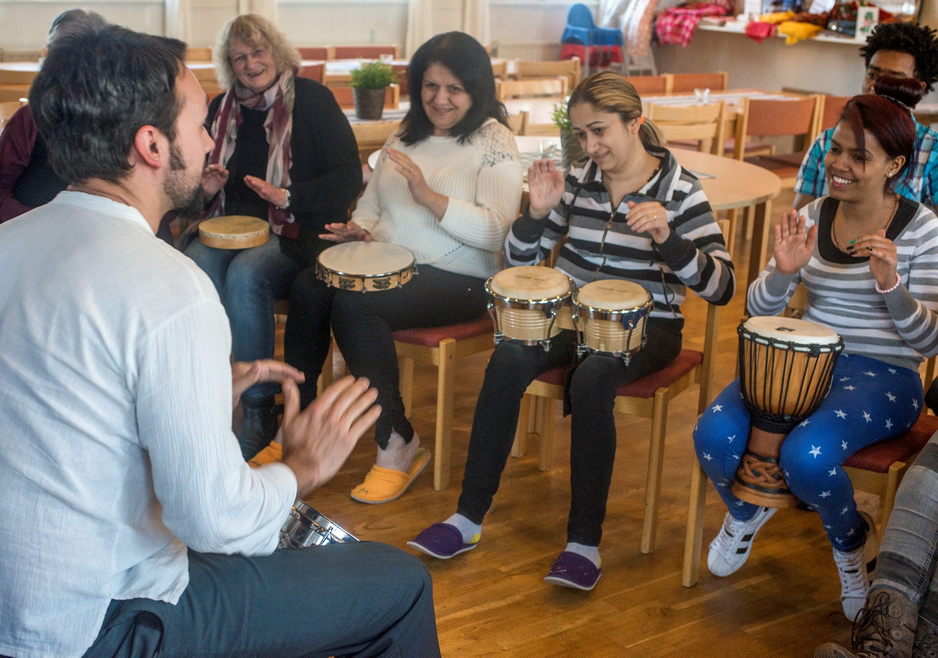 Musikworkshop i Vilans församlingshem. Kom och sjung, trumma och dansa! För alla åldrar.