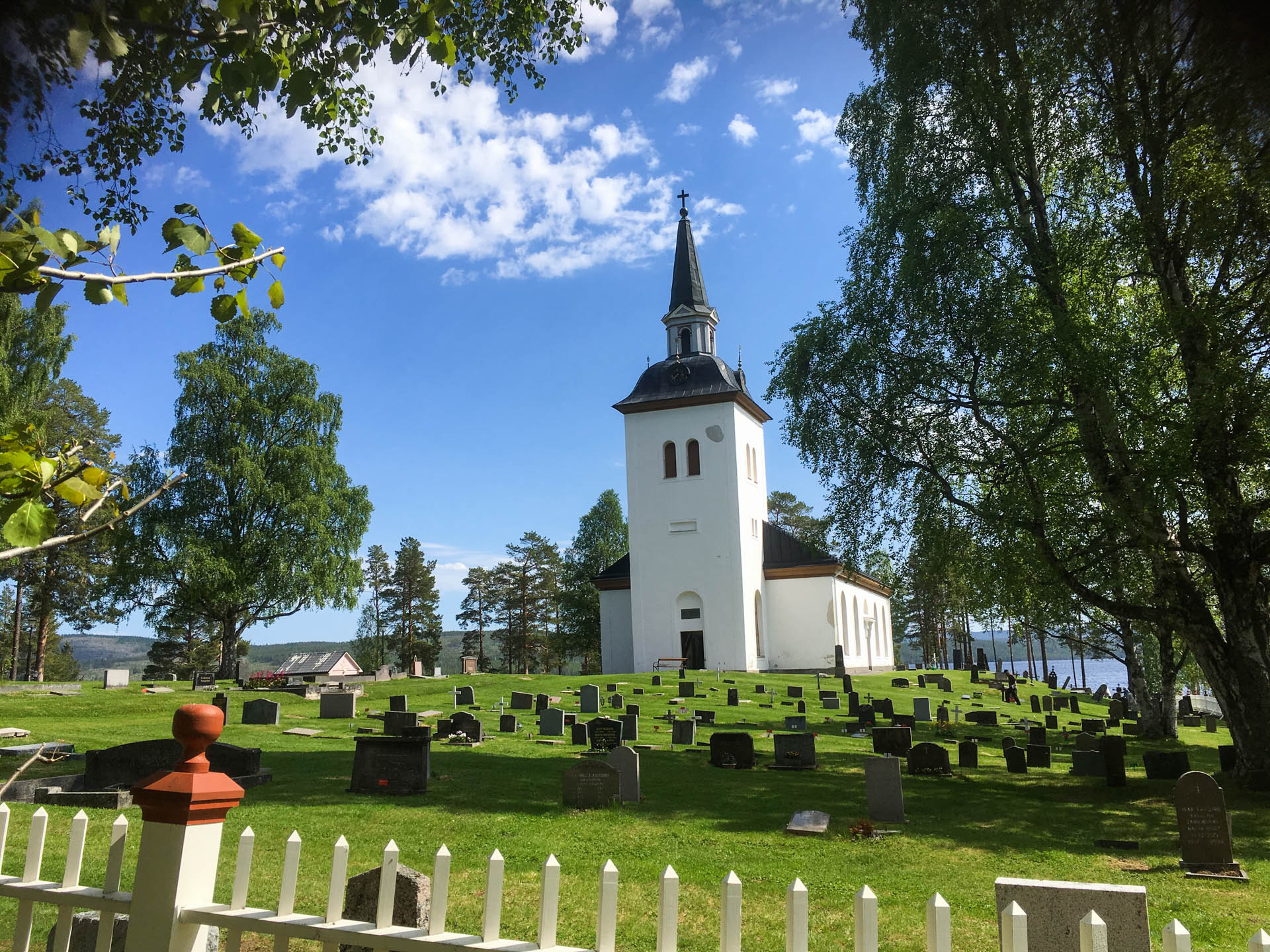 Hotagens kyrka från 1861 ligger på det vackra Kyrknäset omgivet av vatten på tre sidor.