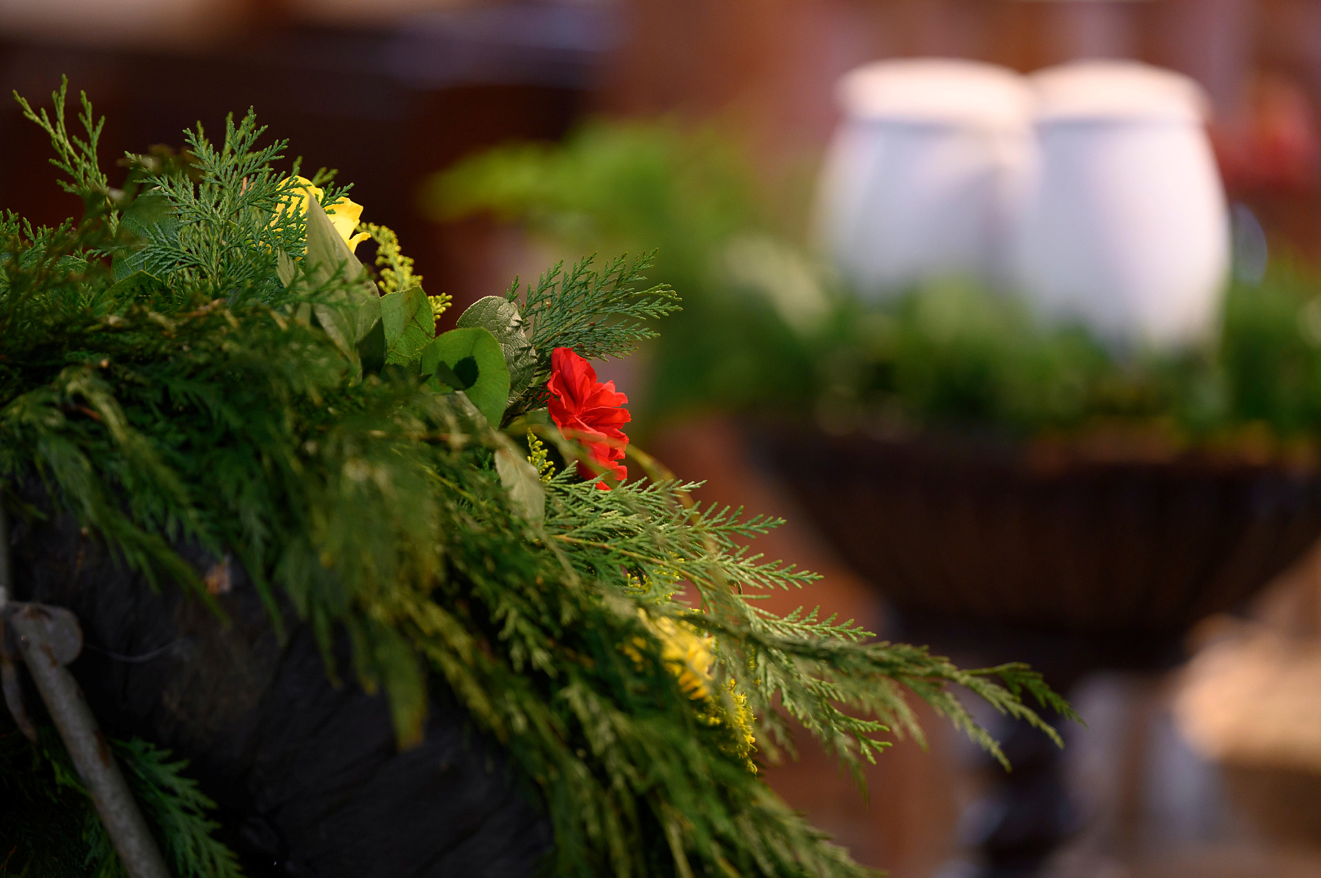 Förberedelser för en begravningsgudstjänst med urna går till på samma sätt som när man väljer en begravning med kista. Urnan ställs ofta på ett bord längst fram i kyrkan eller kapellet och kan, precis som en kista, dekoreras med blommor och utifrån personliga önskemål.